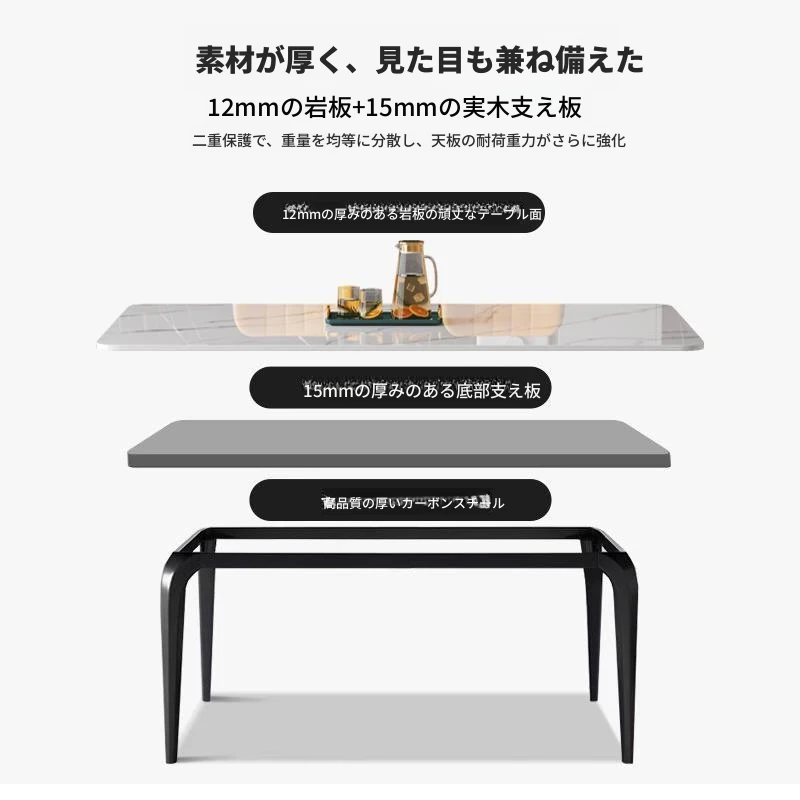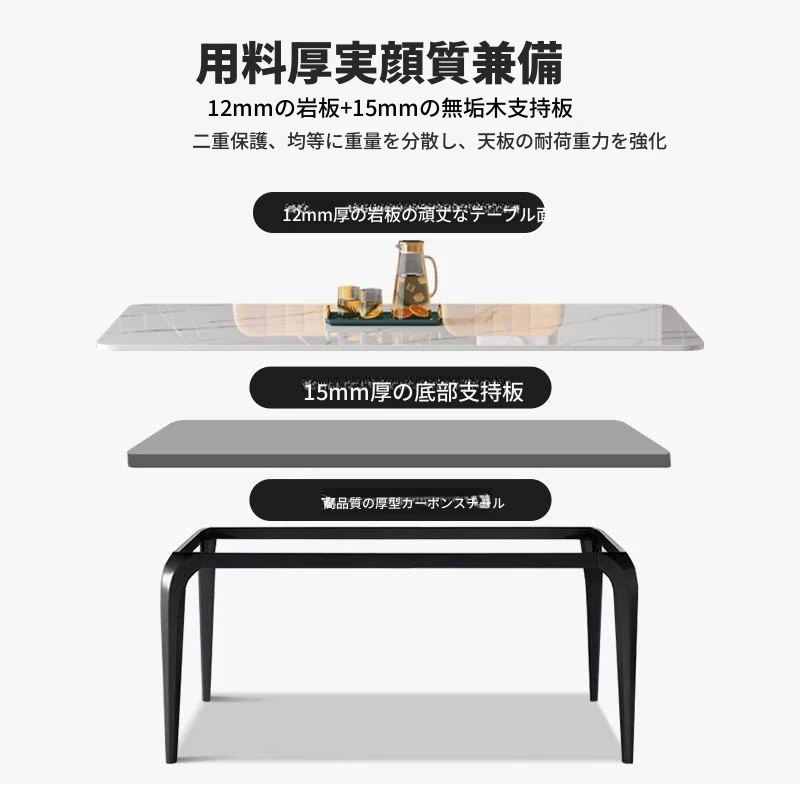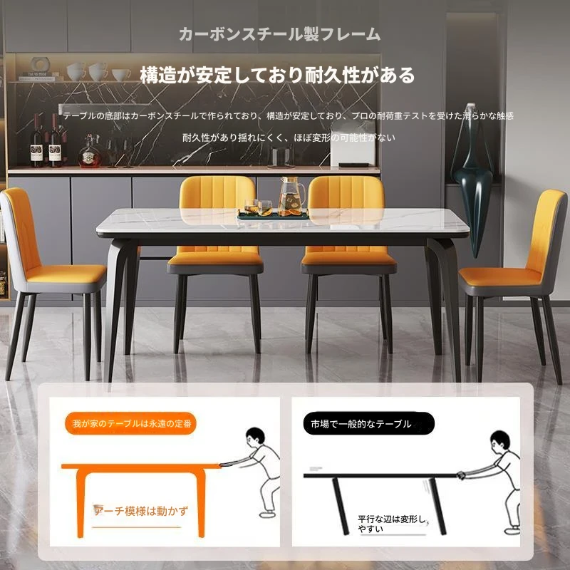 【香港・マカオ送料無料】スタイリッシュな岩板ダイニングテーブル - 小型住宅に最適なモダンでシンプルなデザイン!リビングルームを引き立てる長方形の高級感あふれる食卓。
