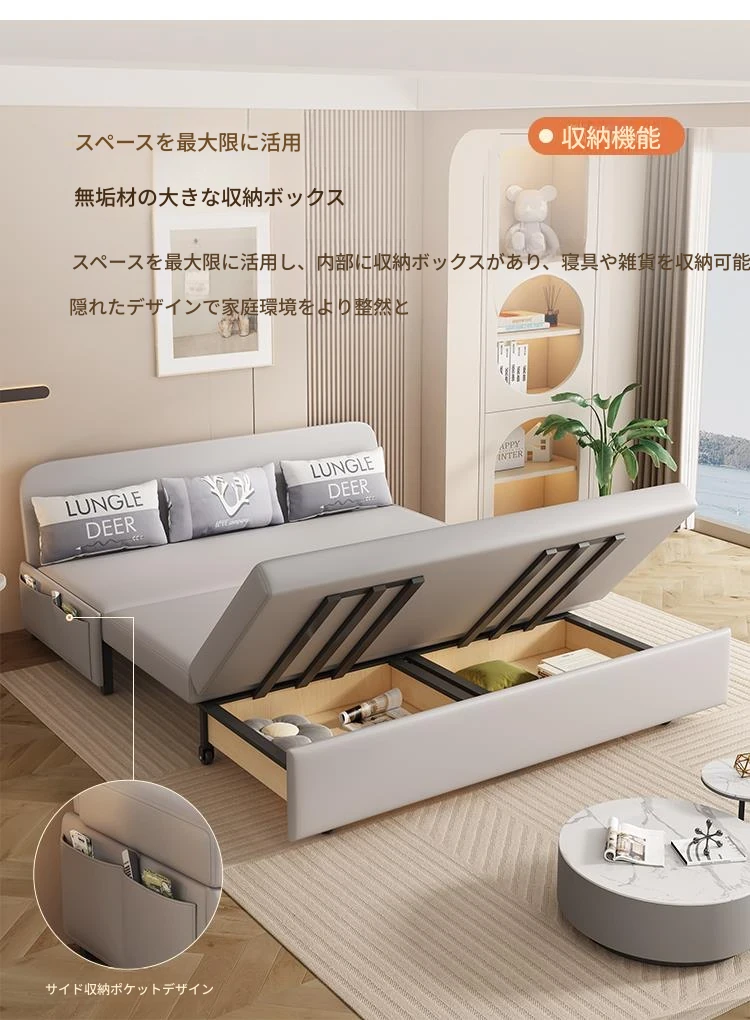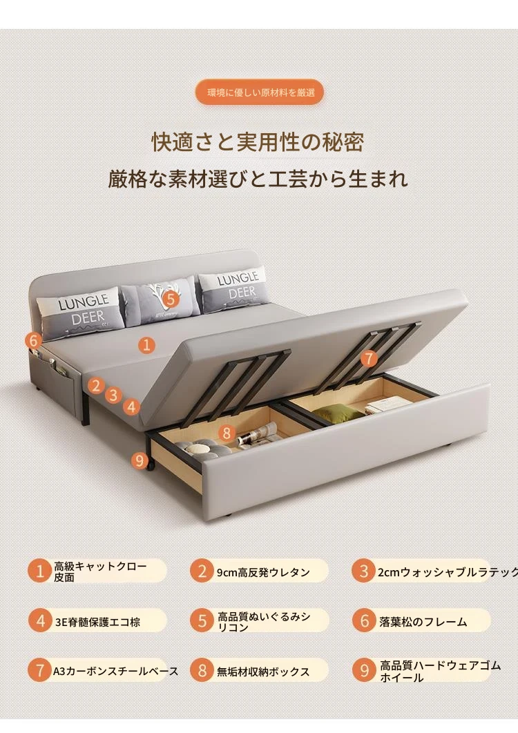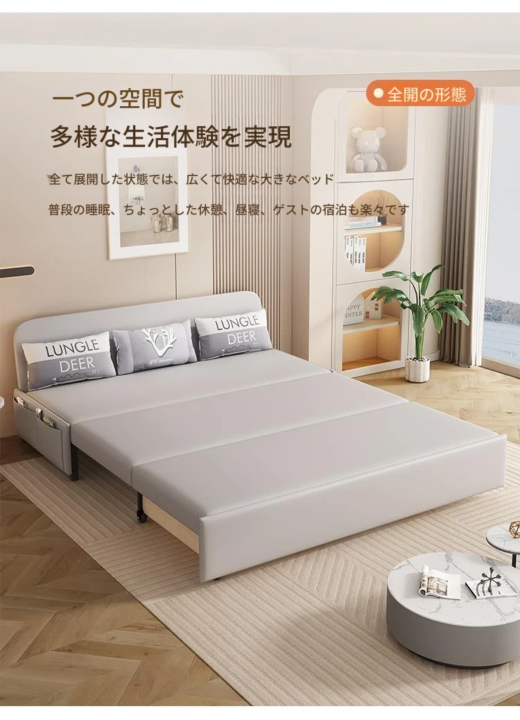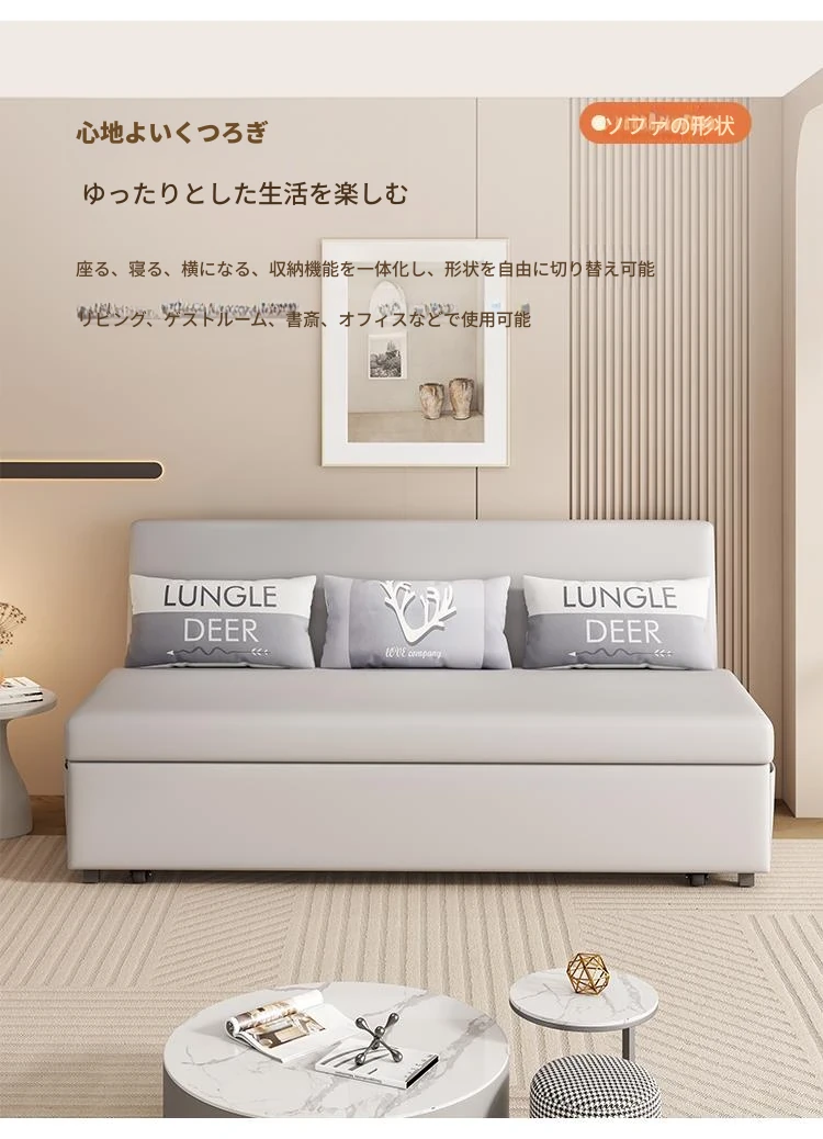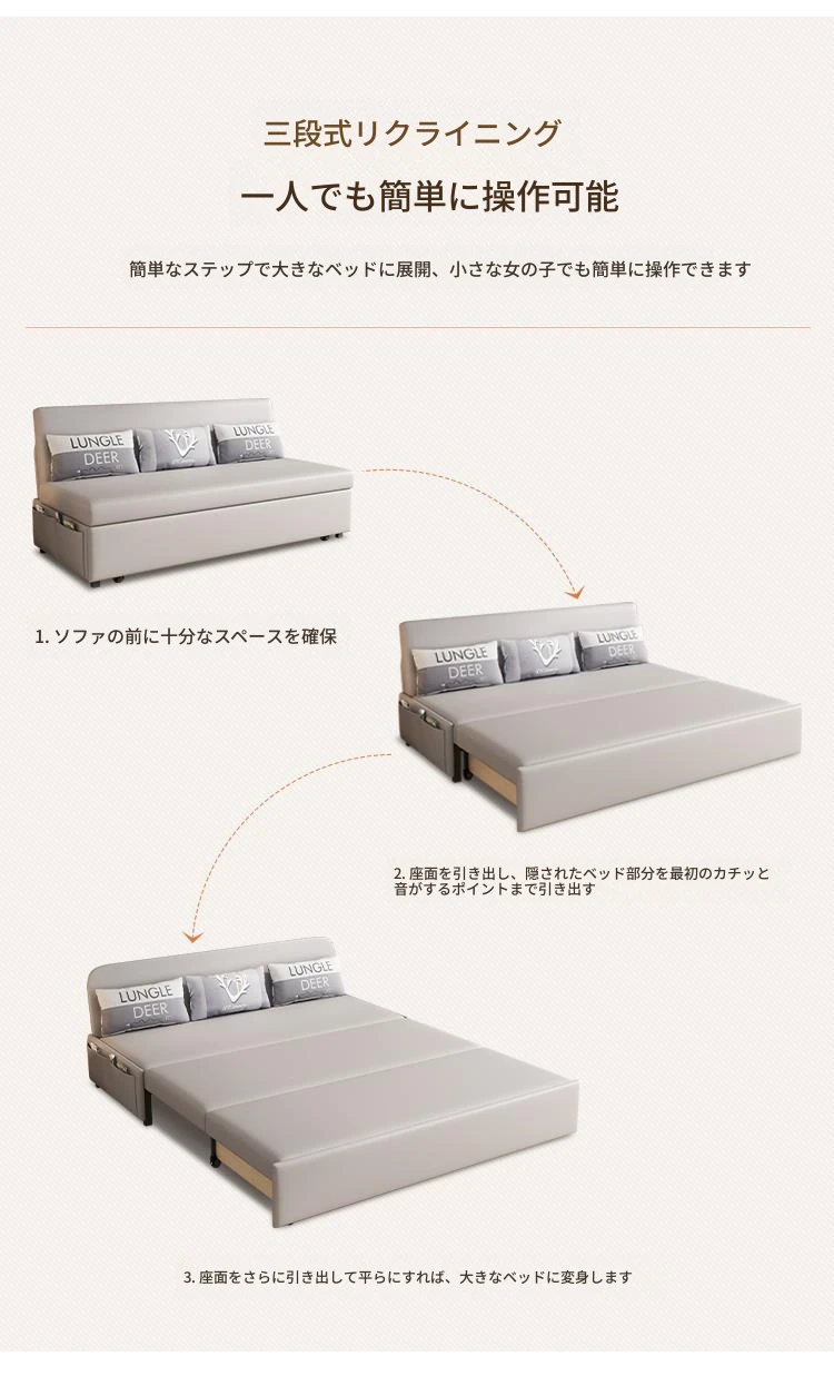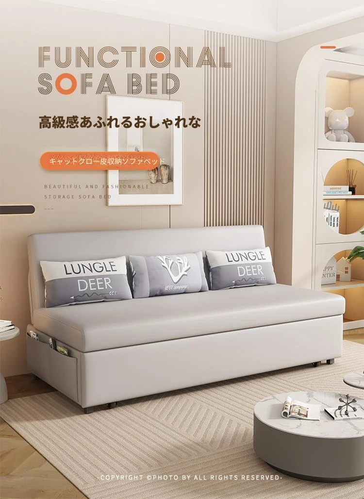 【香港送料無料】小スペースにも最適!猫爪デザインの折りたたみ式2WAYソファベッド。おしゃれなクリームカラーで、機能性抜群のマルチユースアイテムです!