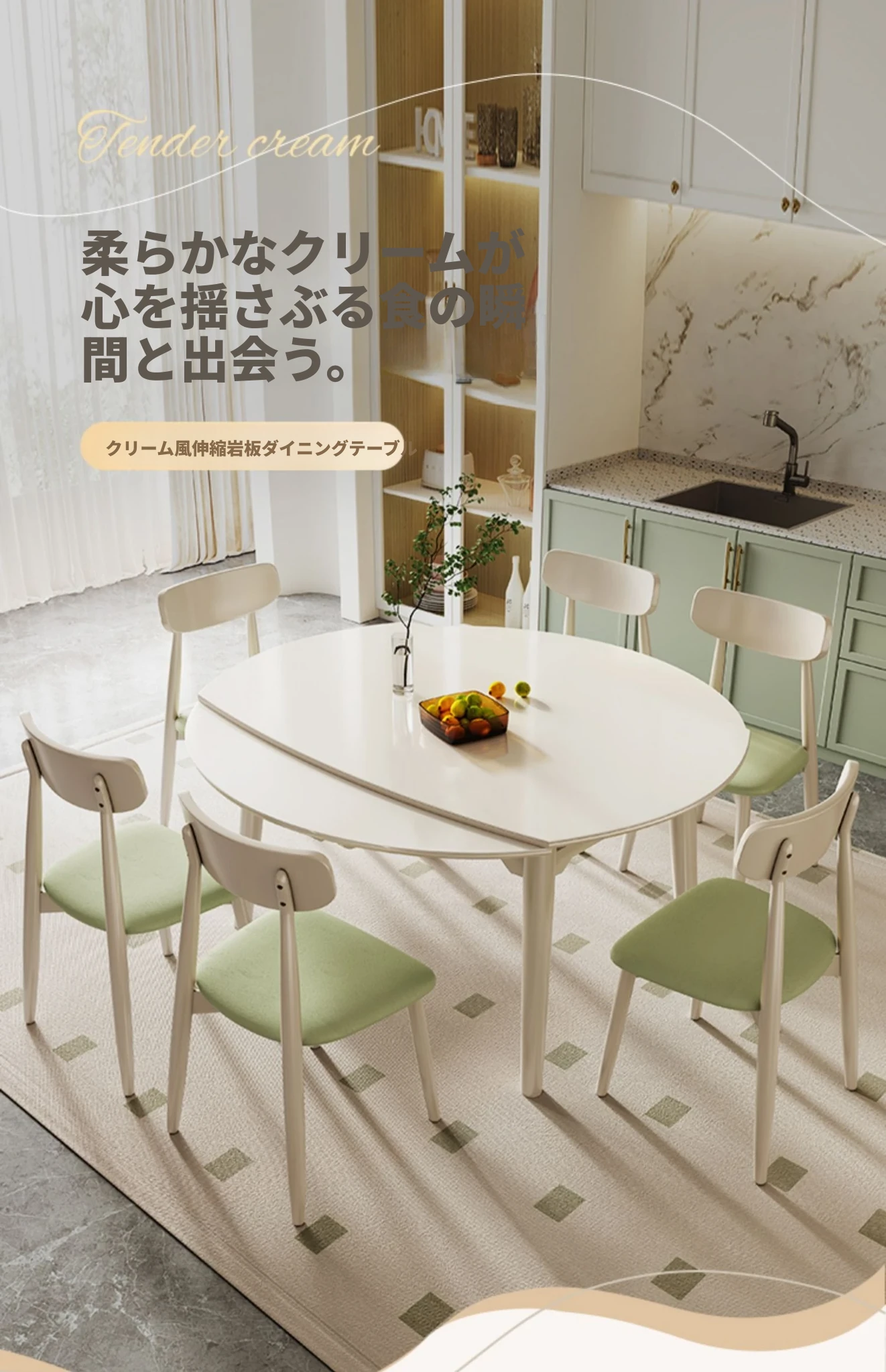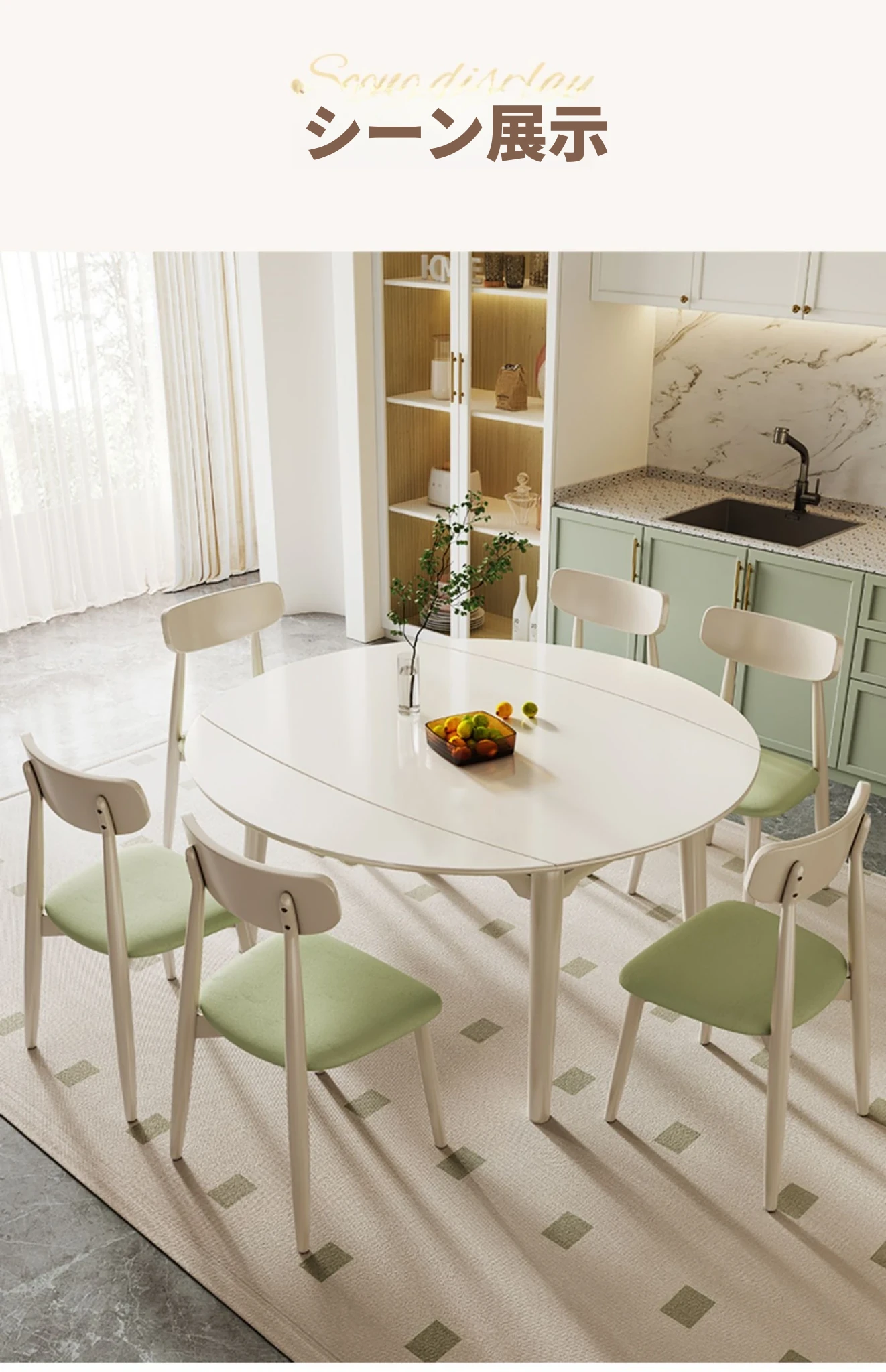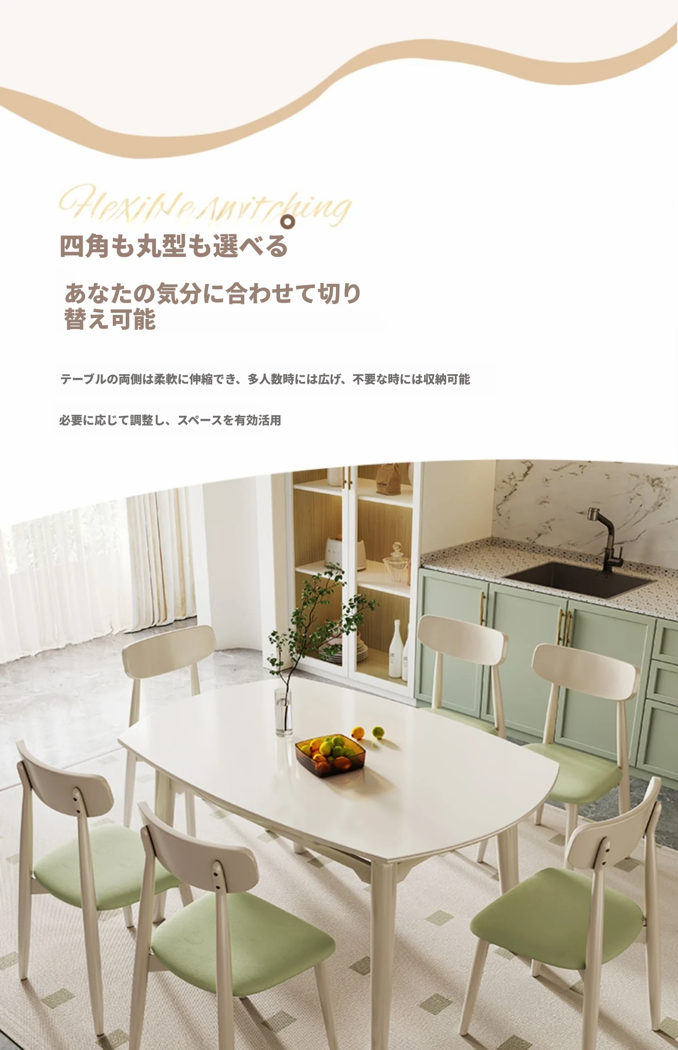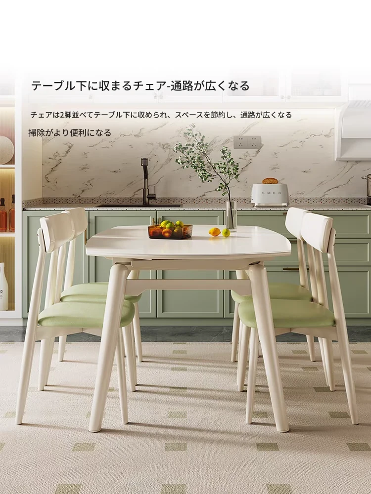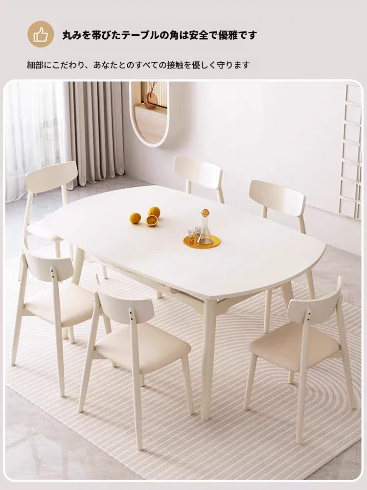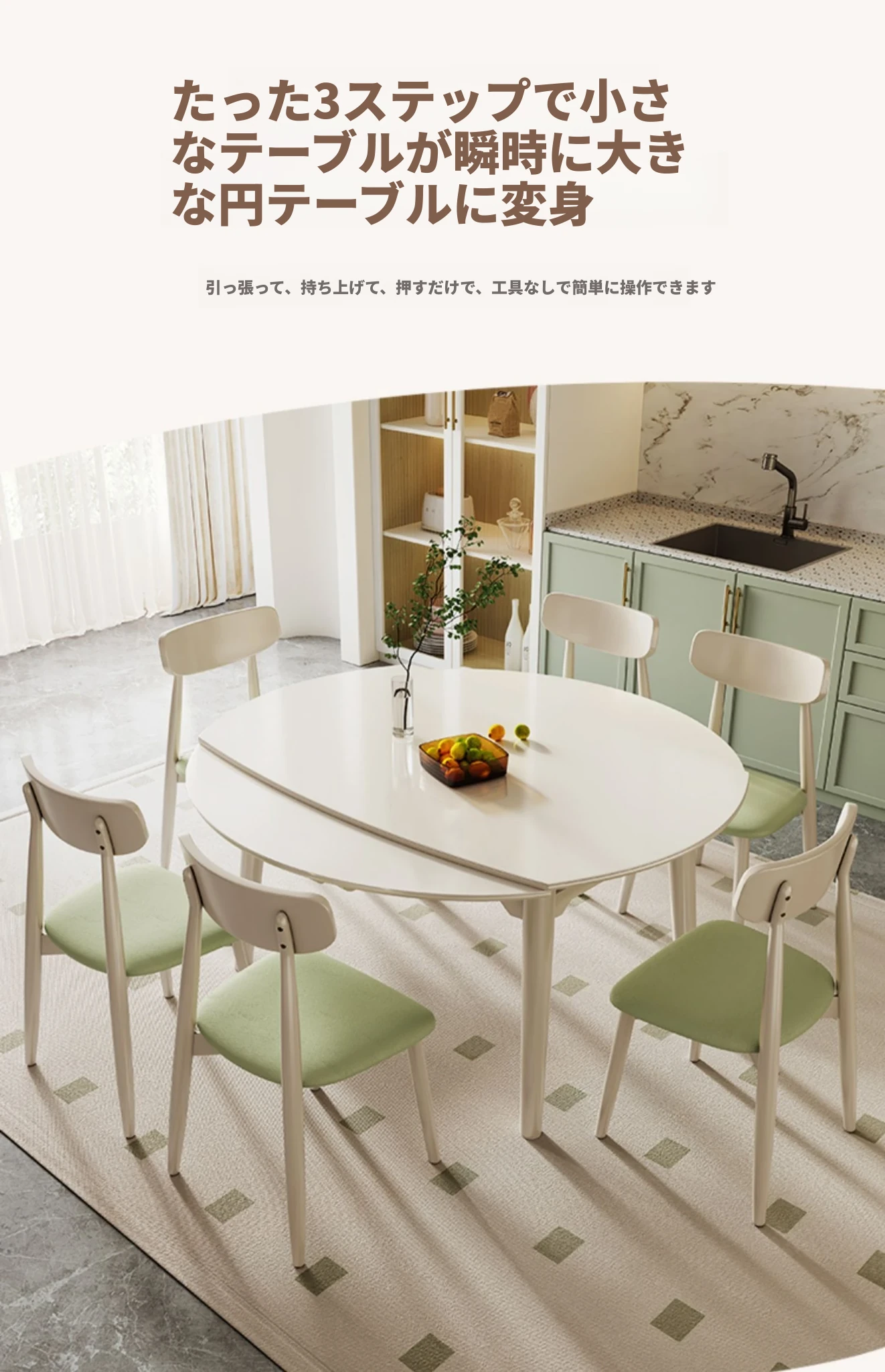 フランス風クリーム仕上げの伸縮可能な無垢材ロックテーブル|小型住宅に最適|四角と丸の両方の形状に対応|ダイニングチェアセット|スタイリッシュで機能的な食卓を実現!