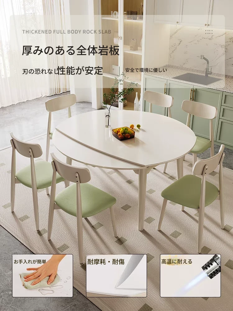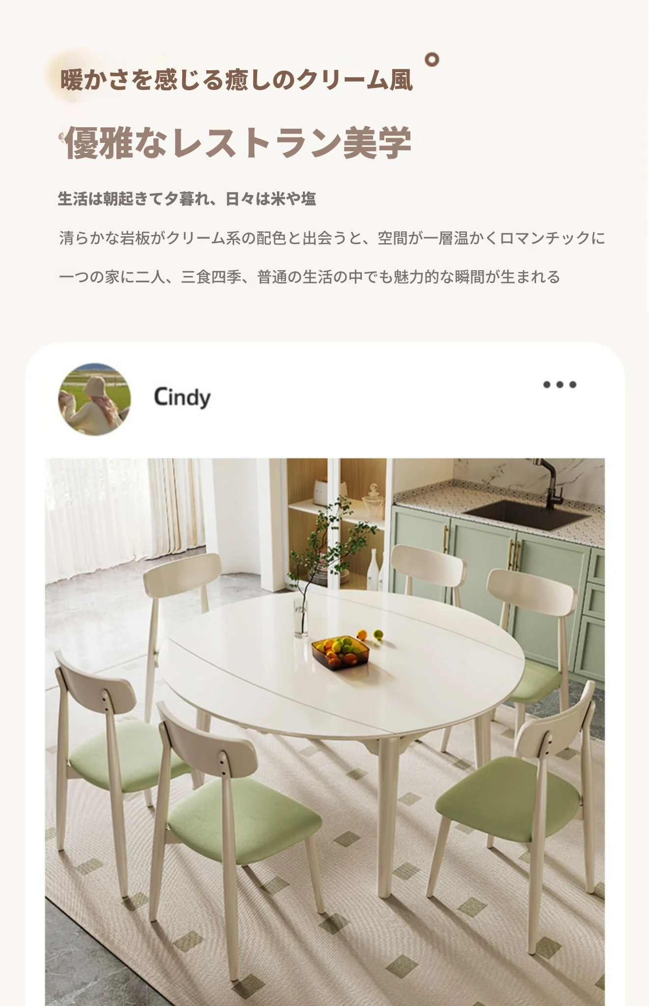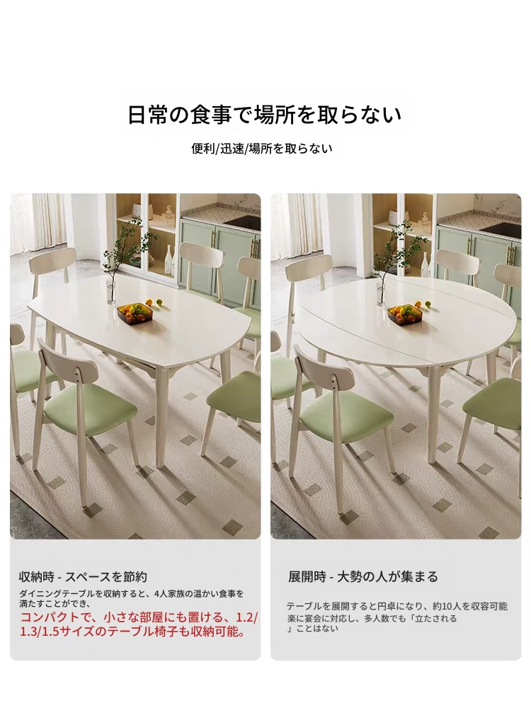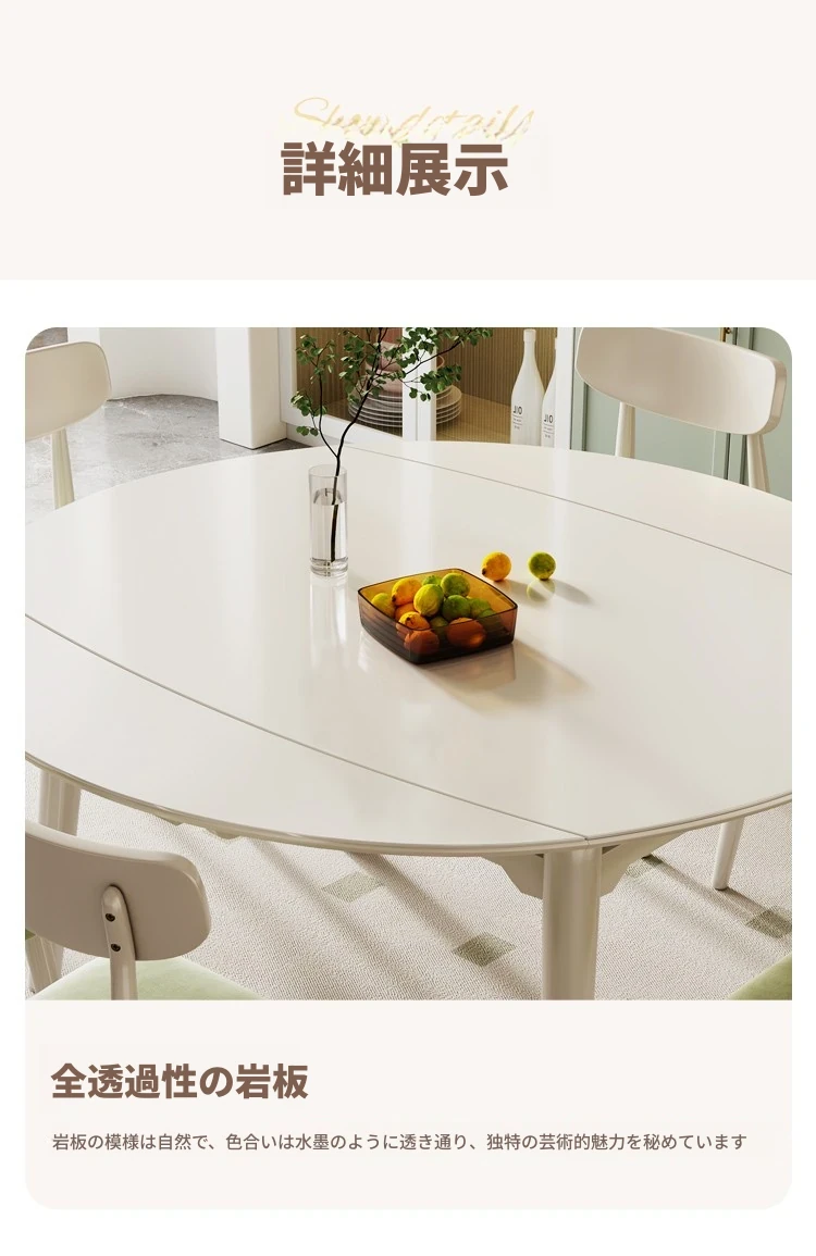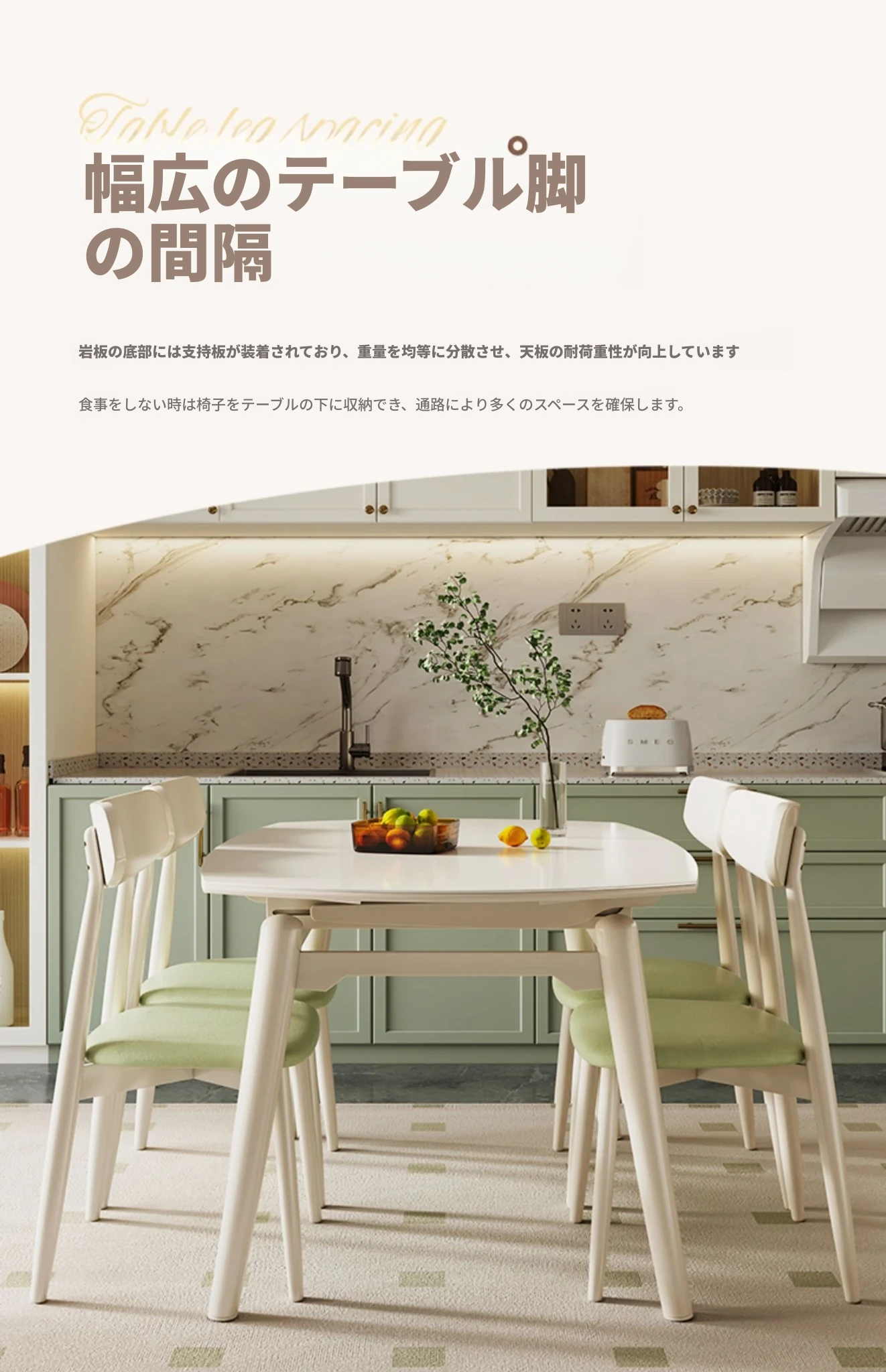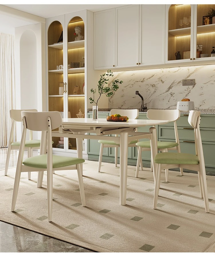 フランス風クリーム仕上げの伸縮可能な無垢材ロックテーブル|小型住宅に最適|四角と丸の両方の形状に対応|ダイニングチェアセット|スタイリッシュで機能的な食卓を実現!