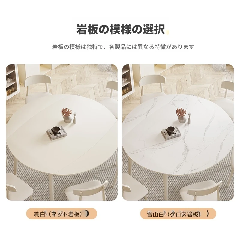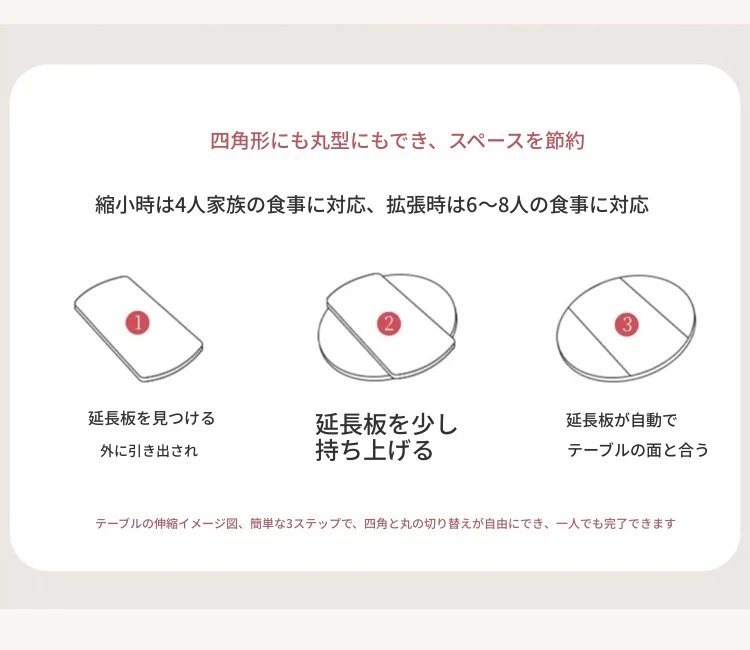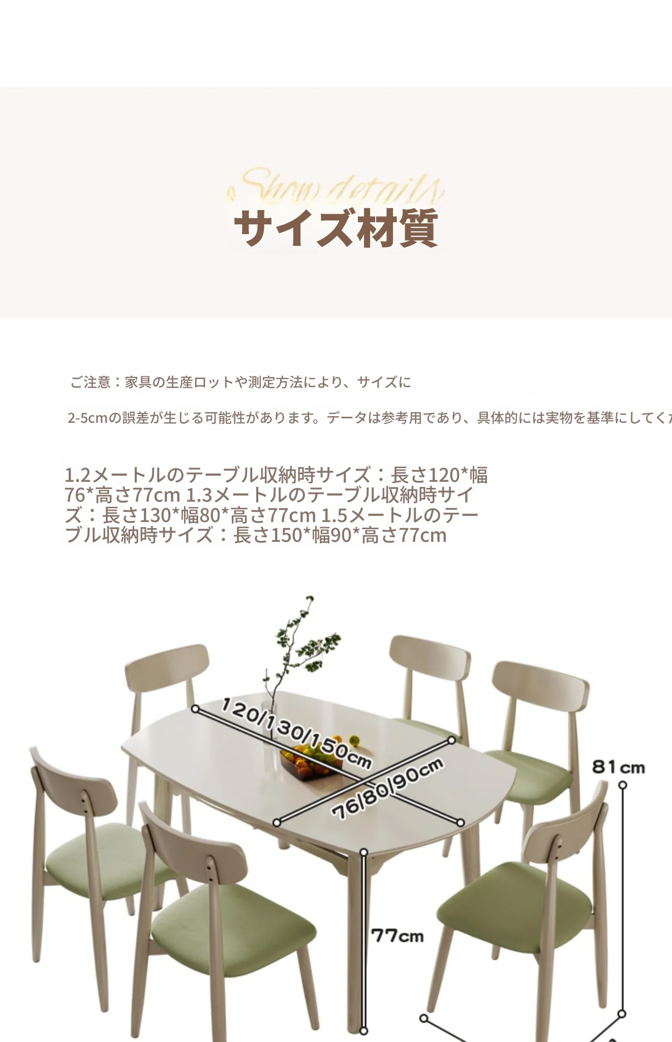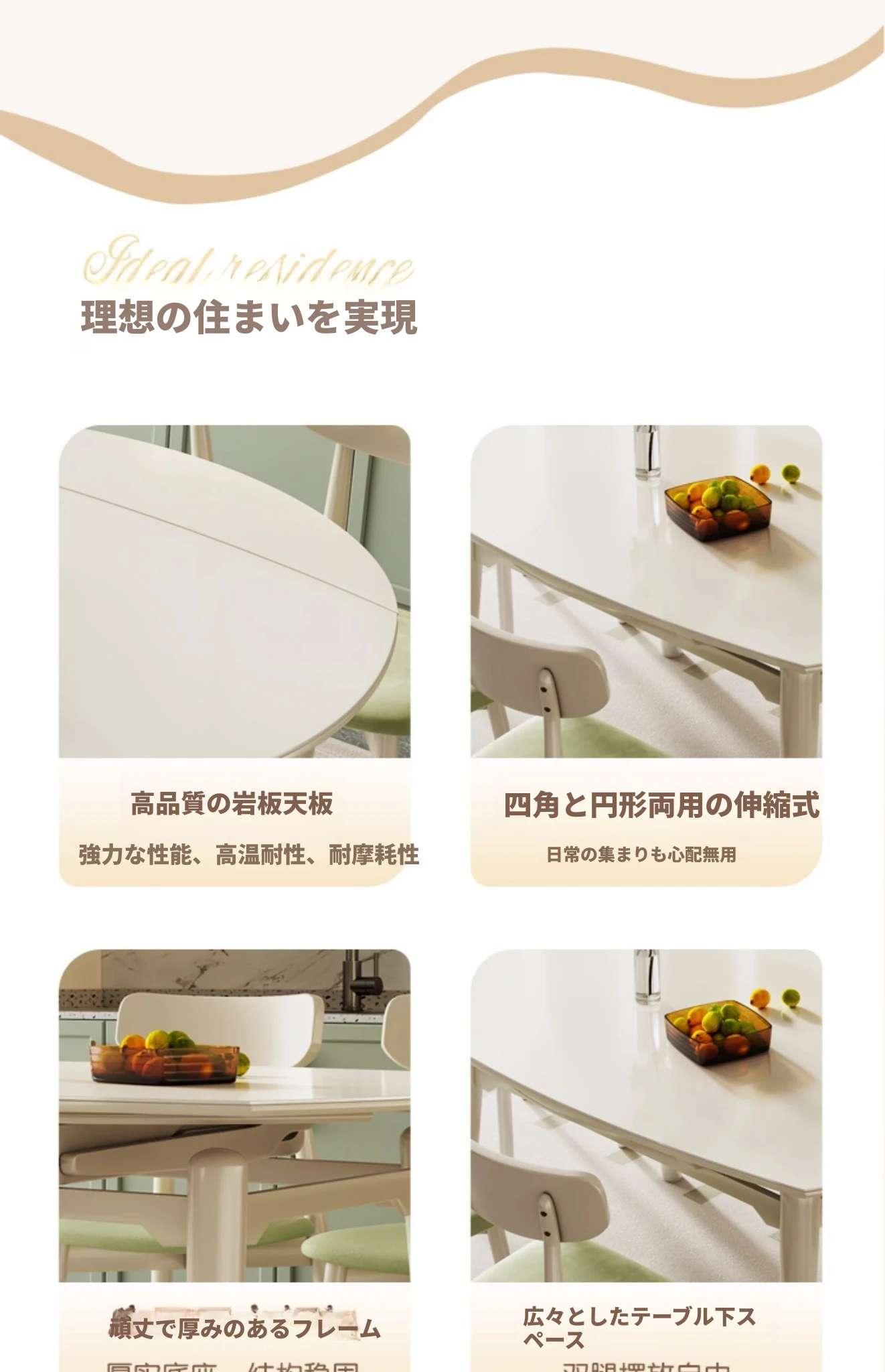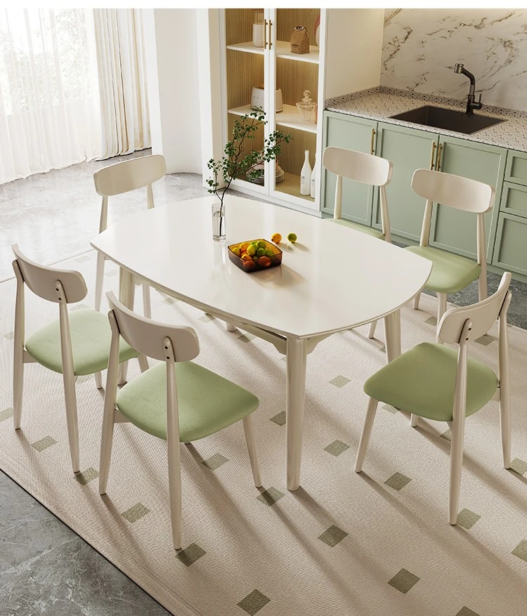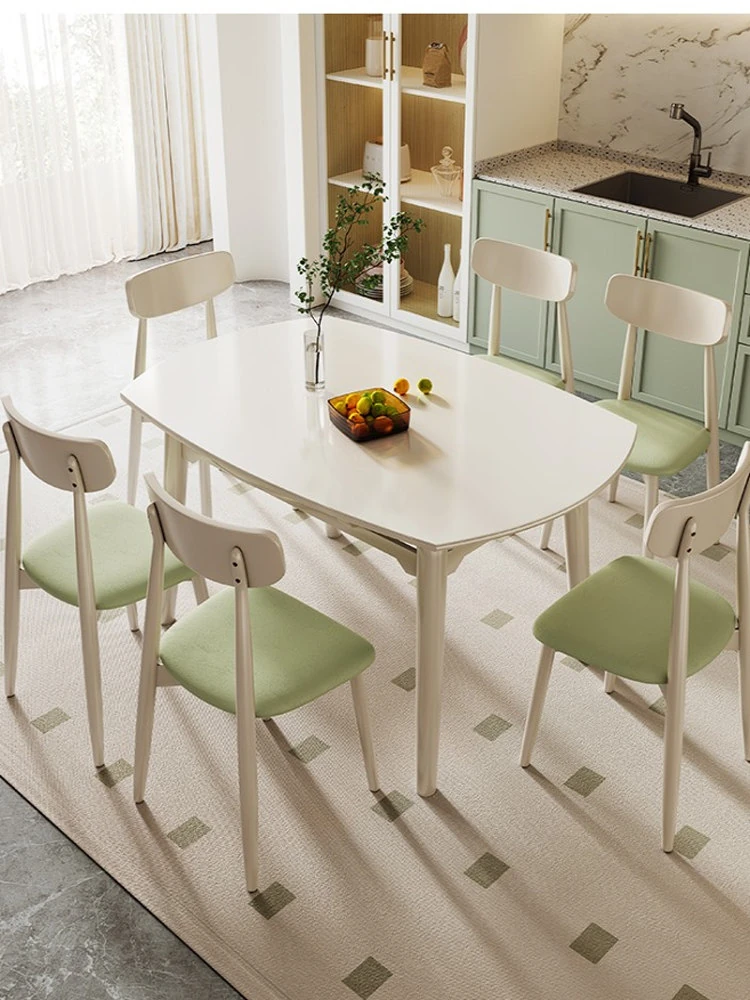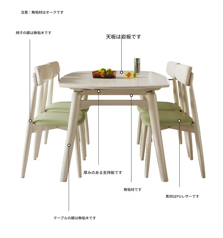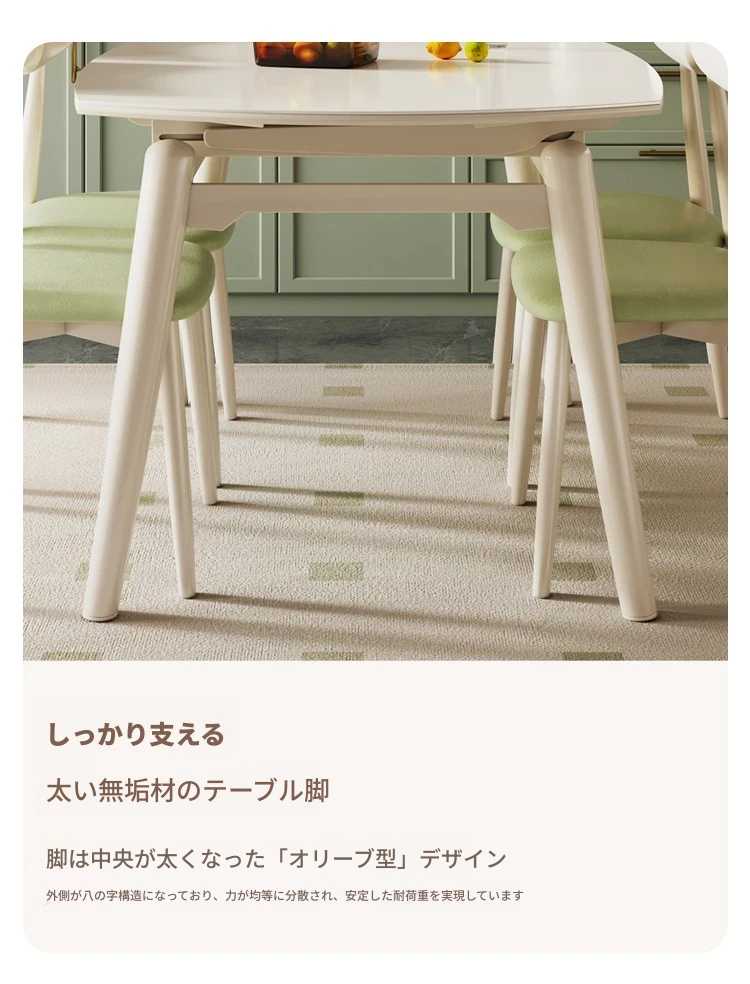 フランス風クリーム仕上げの伸縮可能な無垢材ロックテーブル|小型住宅に最適|四角と丸の両方の形状に対応|ダイニングチェアセット|スタイリッシュで機能的な食卓を実現!