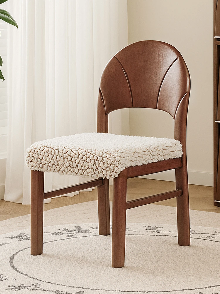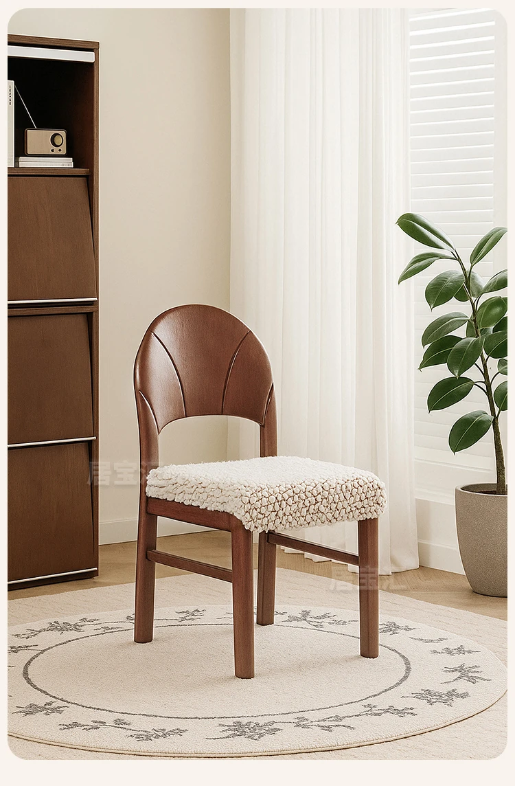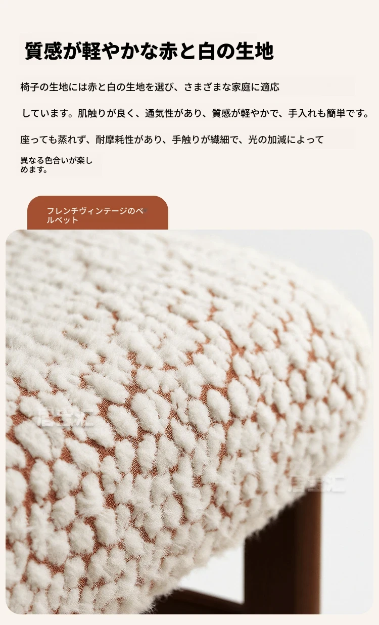 フレンチビンテージデザインのクリエイティブソフトパッケージ、天然木製の寝室用メイクアップスツール。おしゃれで快適な背もたれ付き、仕事にも最適な椅子です。あなたの空間を一層引き立てます!