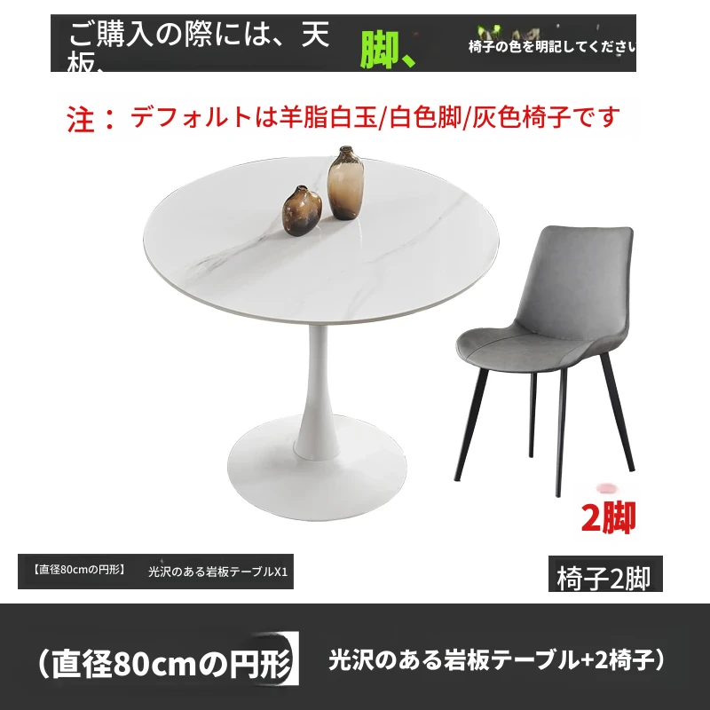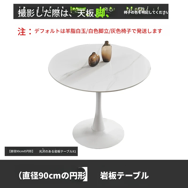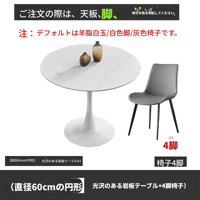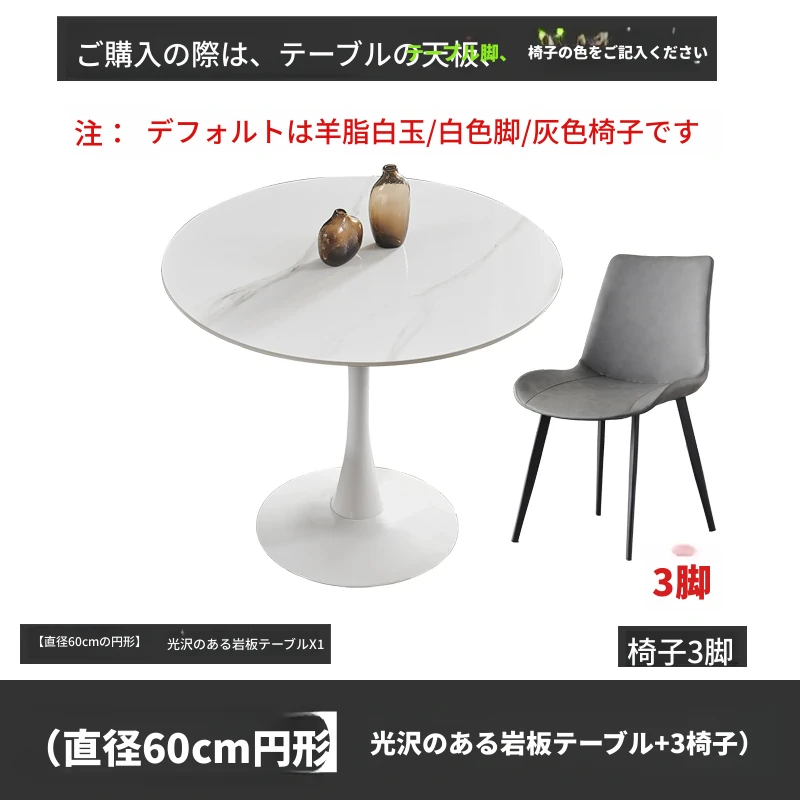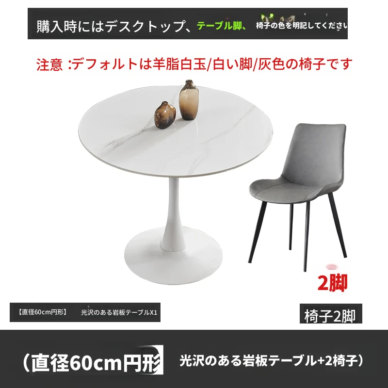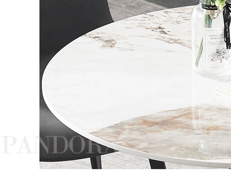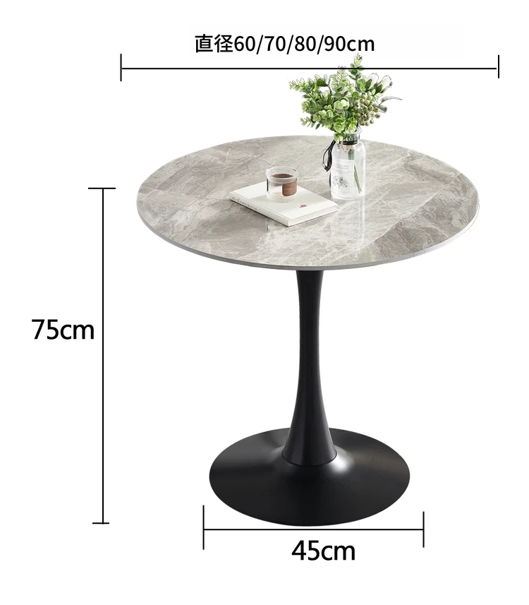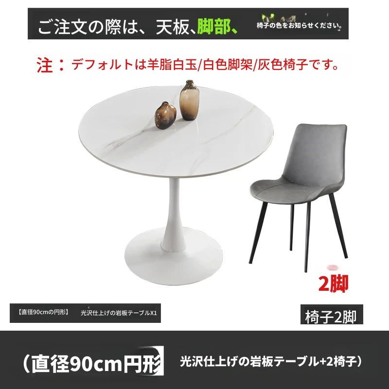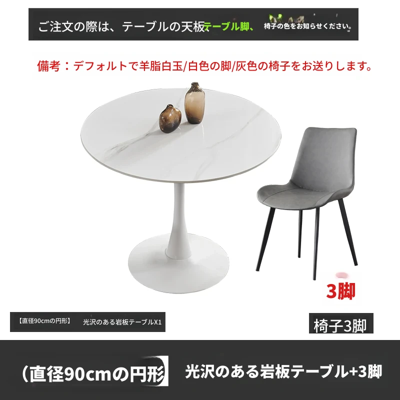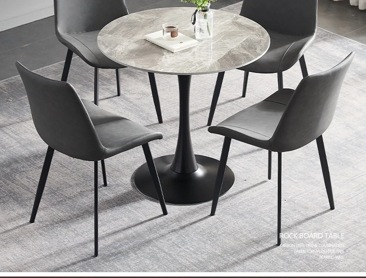 イタリアンラグジュアリーの営業所向け、光沢のある石板製の円形ダイニングテーブル&カフェテーブルセット。オフィスでの商談や会議に最適なスタイリッシュなデザイン!