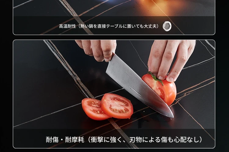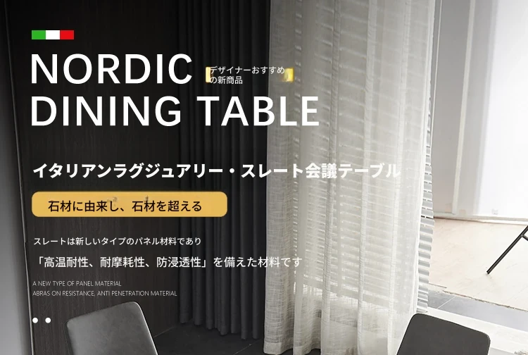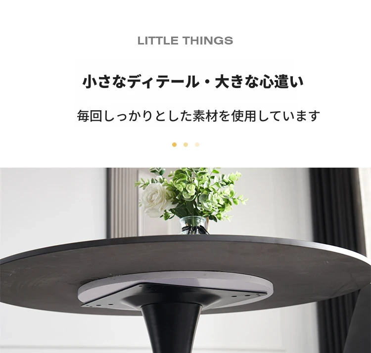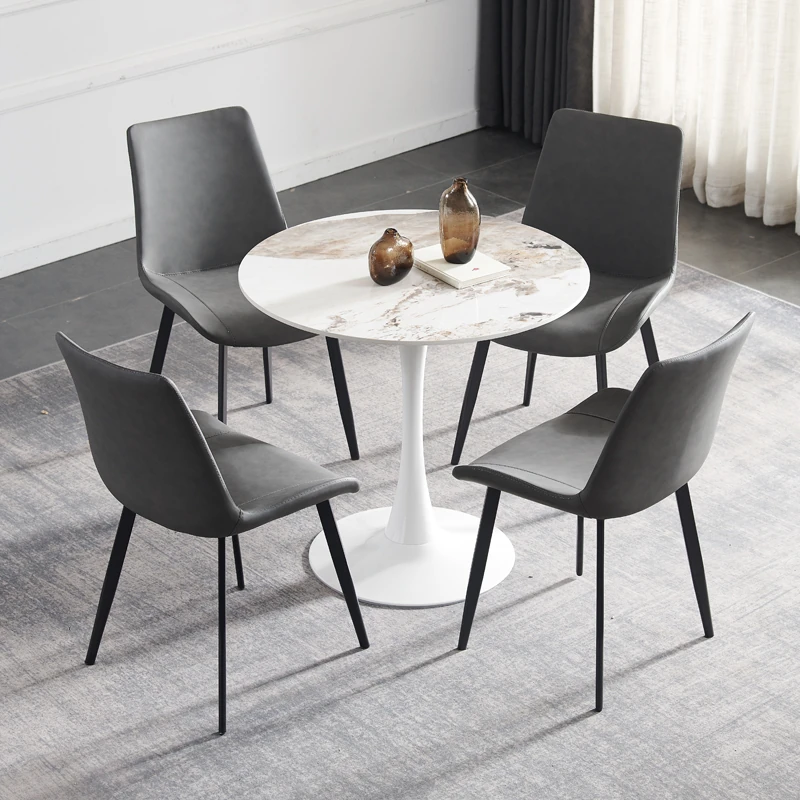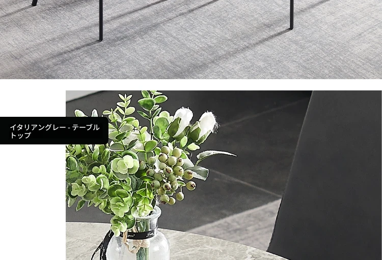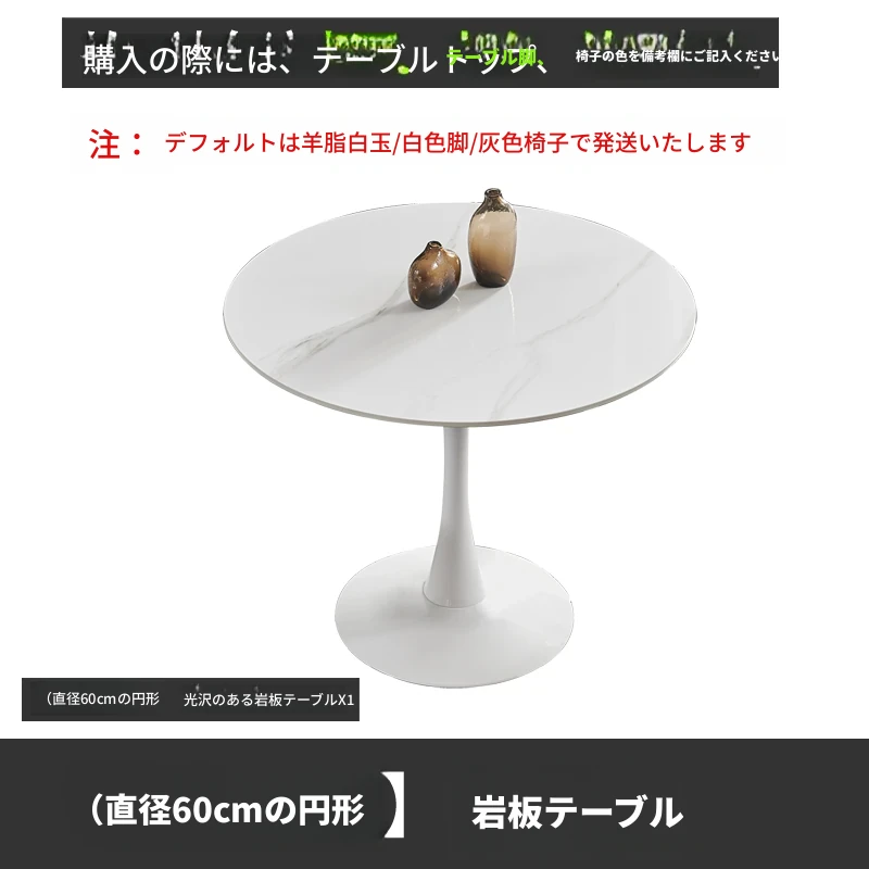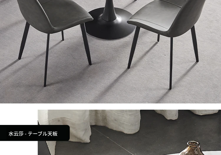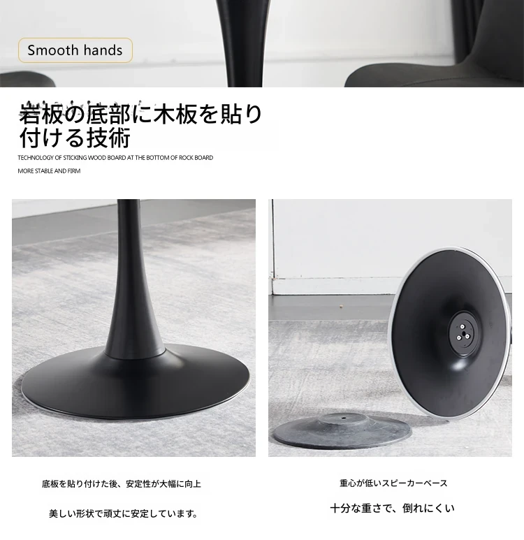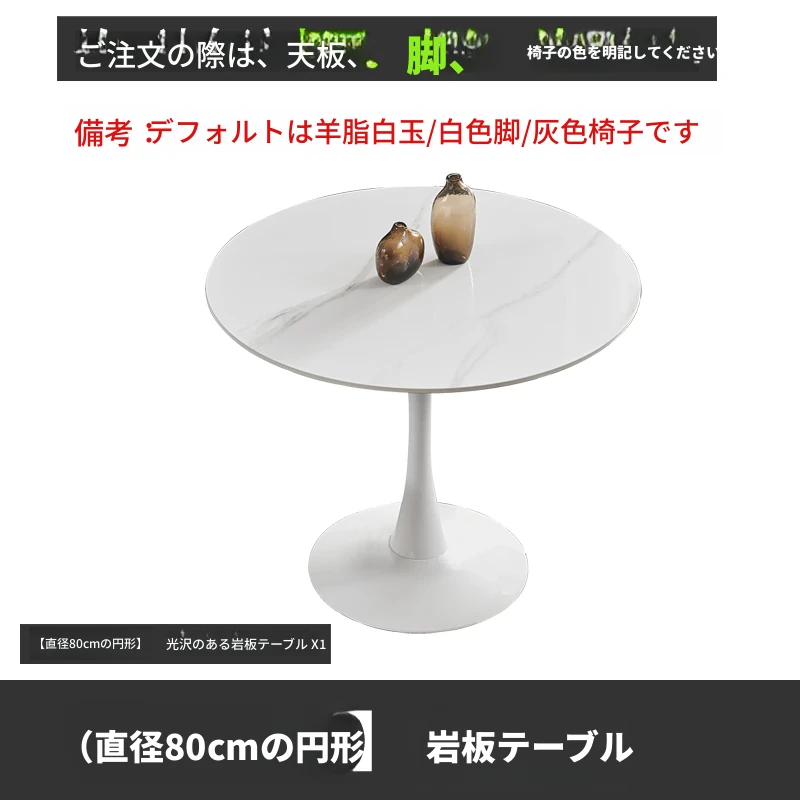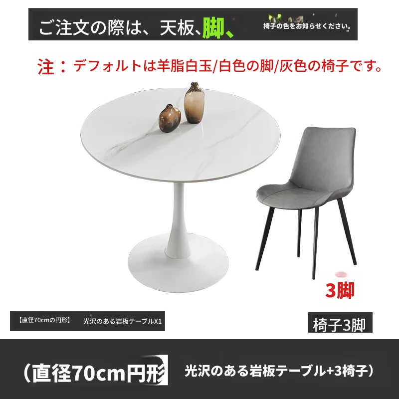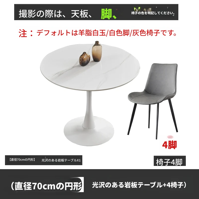 イタリアンラグジュアリーの営業所向け、光沢のある石板製の円形ダイニングテーブル&カフェテーブルセット。オフィスでの商談や会議に最適なスタイリッシュなデザイン!