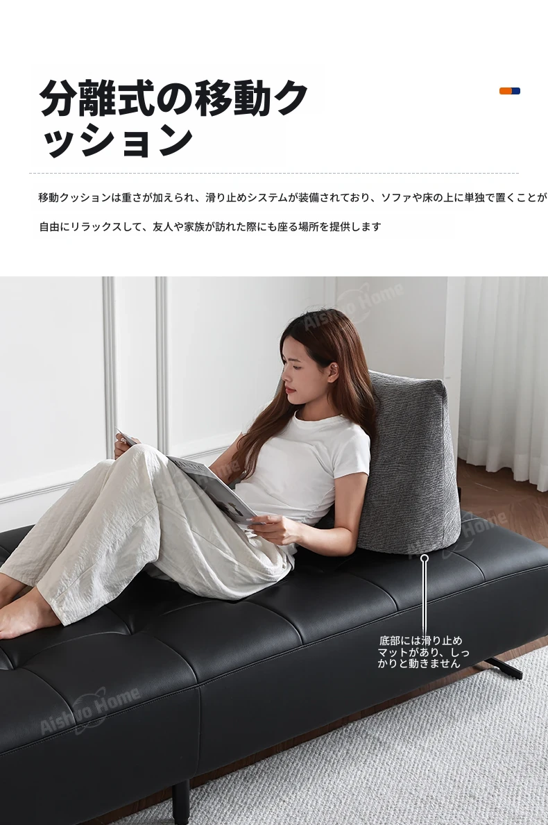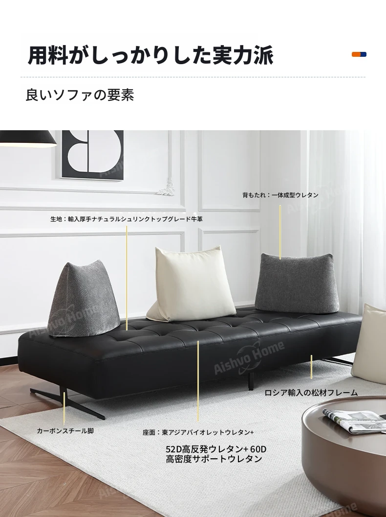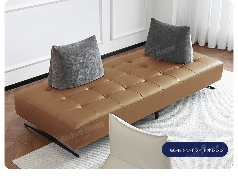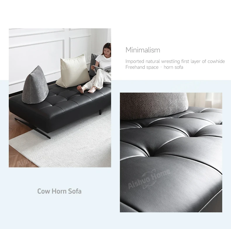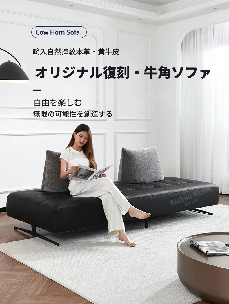 スタイリッシュなミニマリストデザイン!本革製の牛角ソファ、コンパクトサイズで小さな部屋にも最適。移動可能な背もたれとアームレストなしのデザインで、両面使用可能なダブルシート。快適な座り心地を実現!