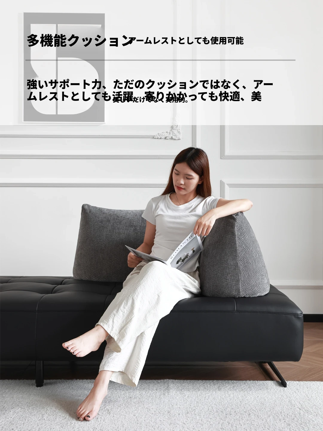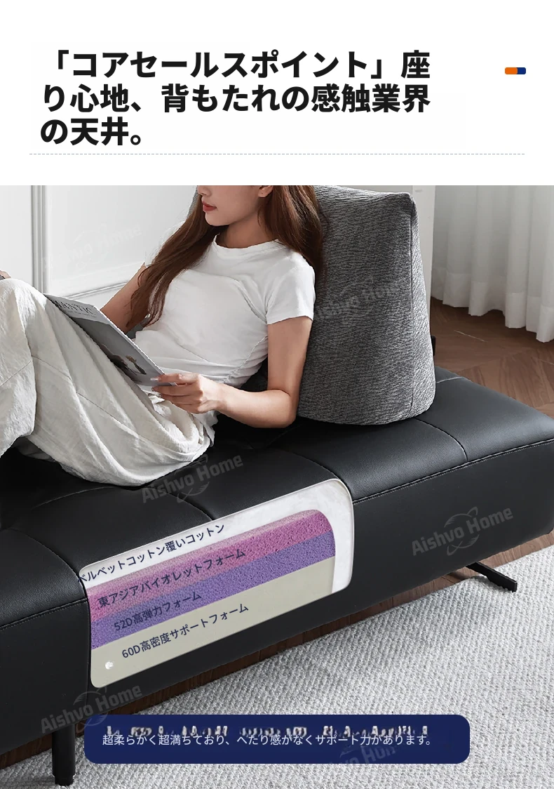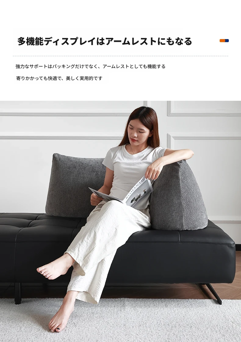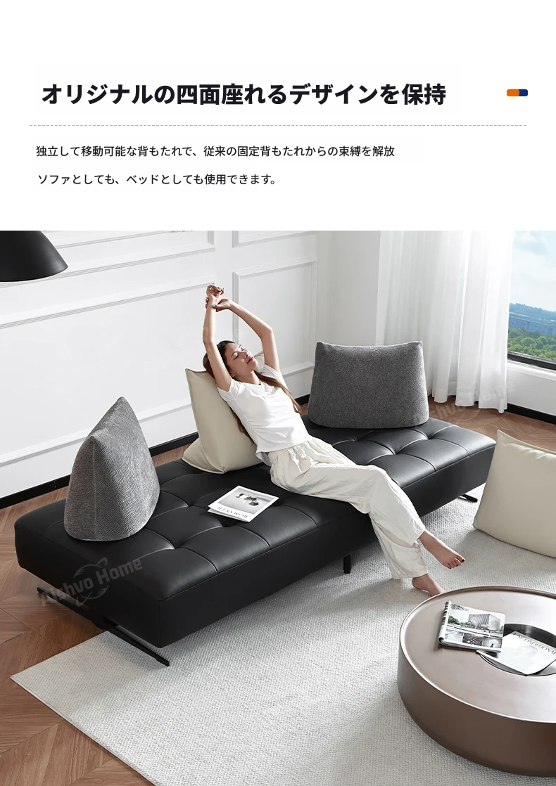 スタイリッシュなミニマリストデザイン!本革製の牛角ソファ、コンパクトサイズで小さな部屋にも最適。移動可能な背もたれとアームレストなしのデザインで、両面使用可能なダブルシート。快適な座り心地を実現!