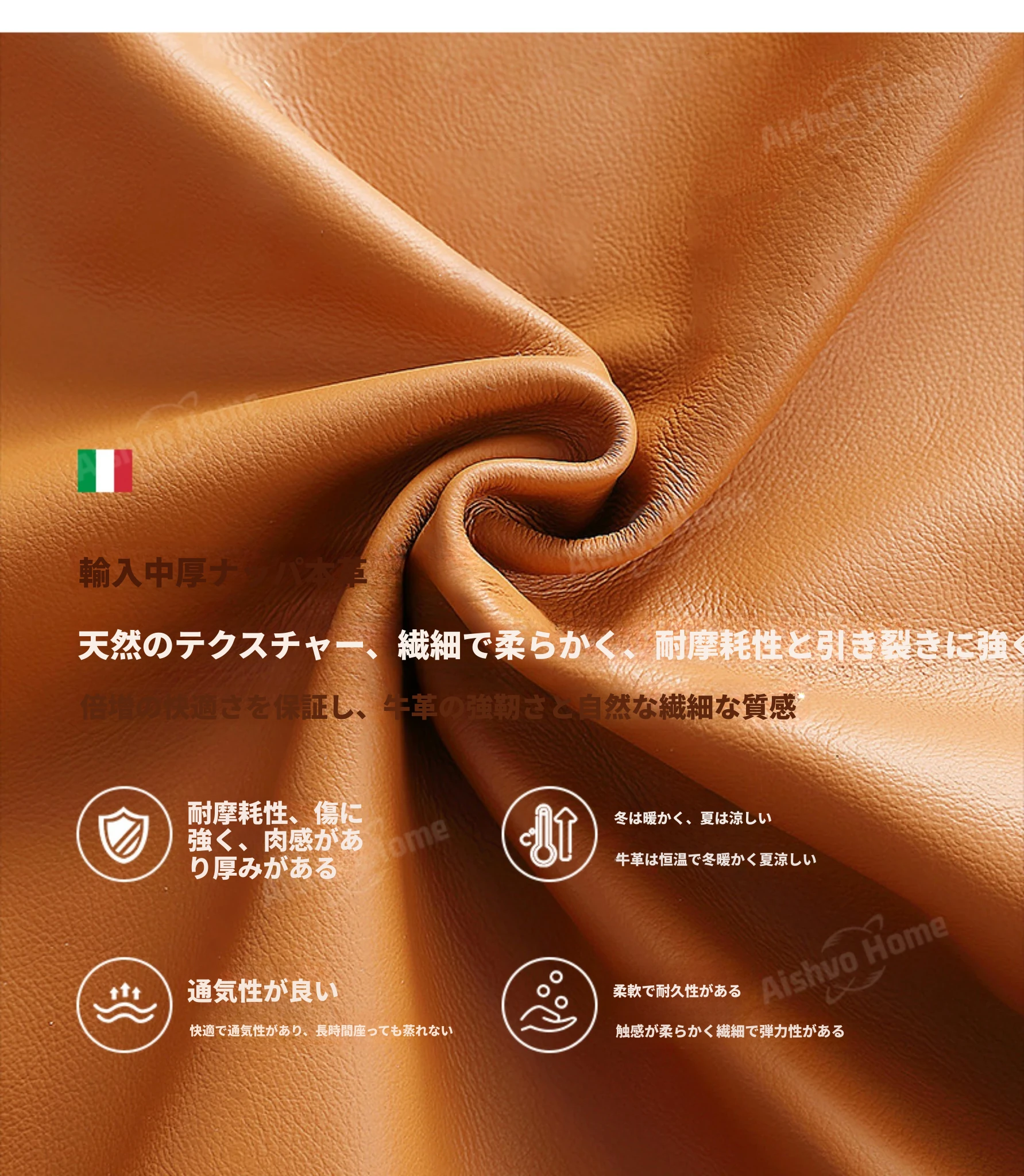 イタリア輸入の中厚ナッパ本革【弾力性ラテックス・ラグジュアリー版|型崩れしないクッション】