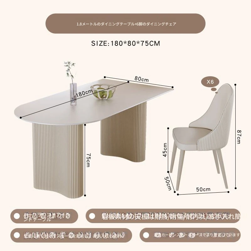 【セット】1.8メートルダイニングテーブル+6脚のダイニングチェア