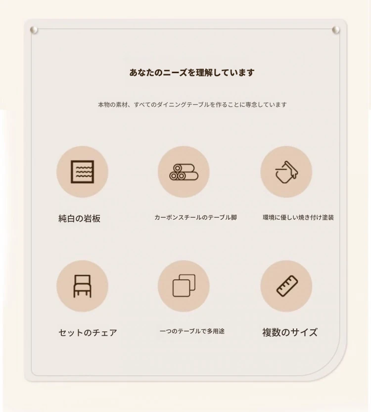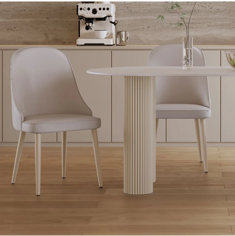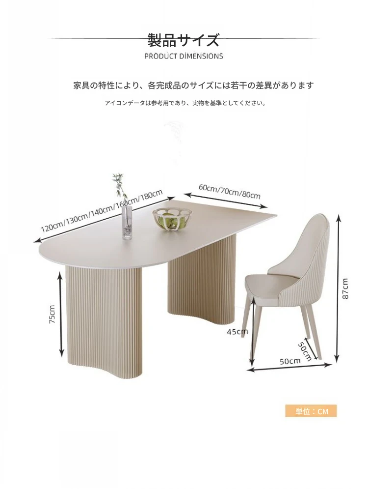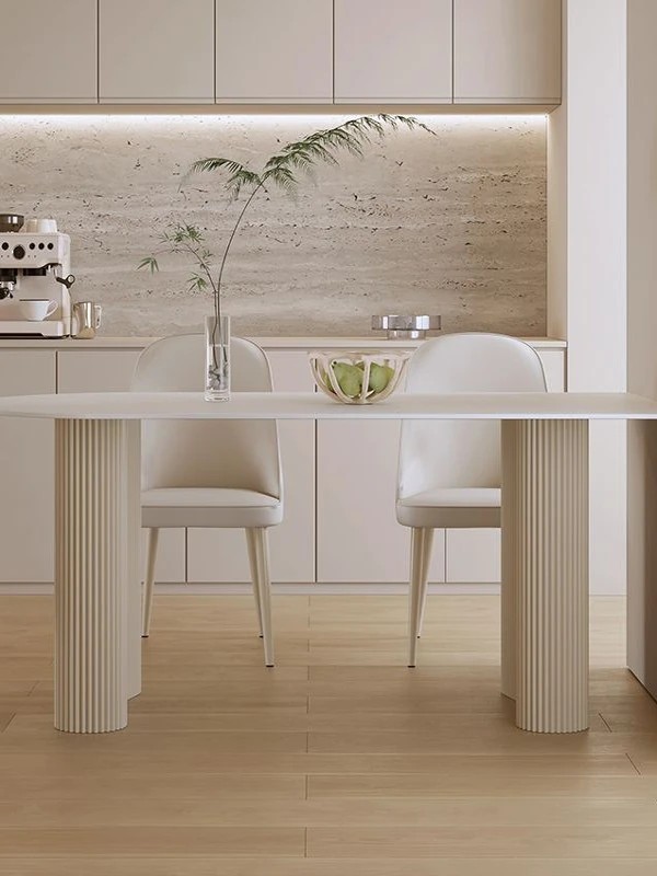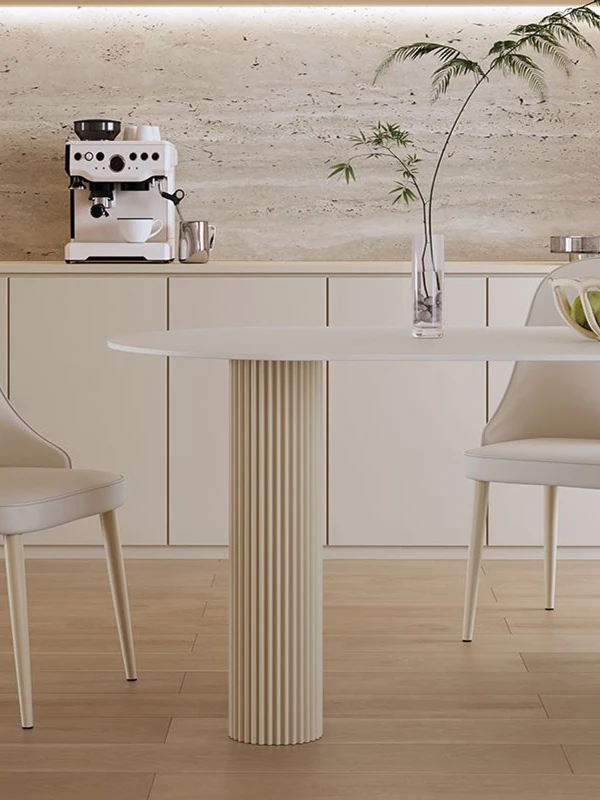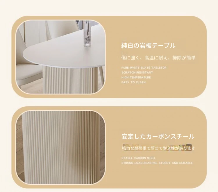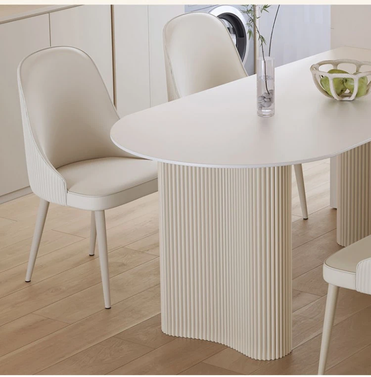 現代的なミニマリストデザイン!半円形の岩板アイランドテーブル - 家庭用や小型オフィスに最適。クリーミーな風合いで、軽やかなラグジュアリーを演出。面談や食事にぴったりなスタイリッシュなダイニングテーブルです。