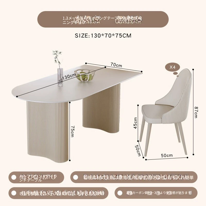 【セット】1.3メートルダイニングテーブル+4脚のダイニングチェア