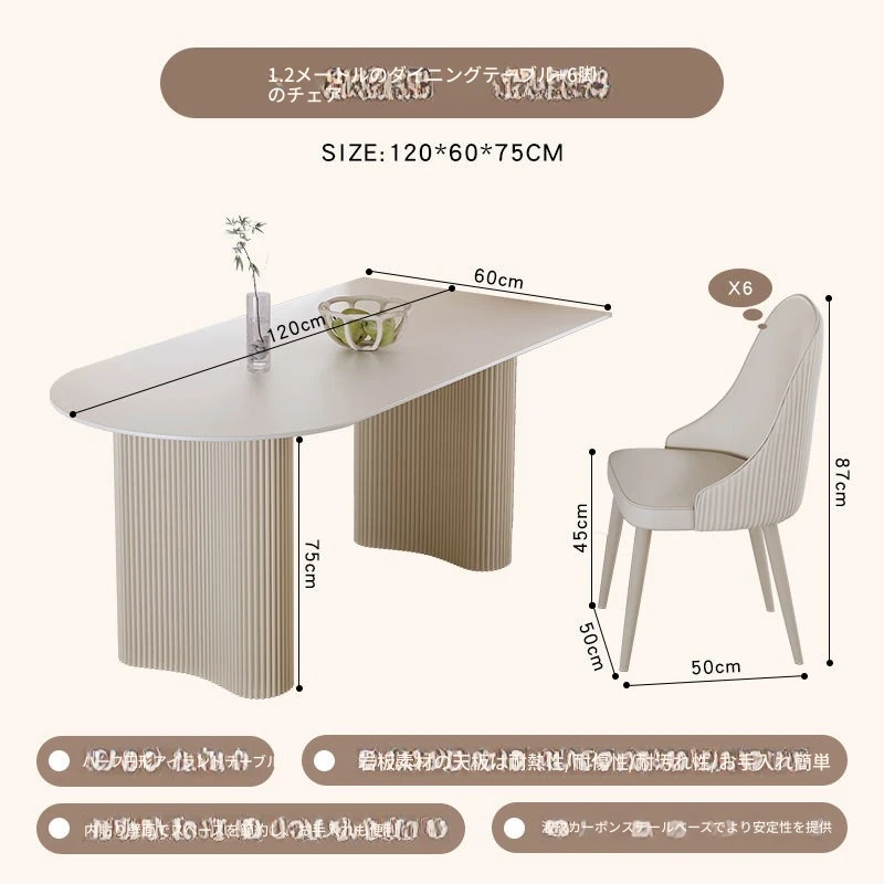 【セット】1.2メートルダイニングテーブル+6脚のダイニングチェア