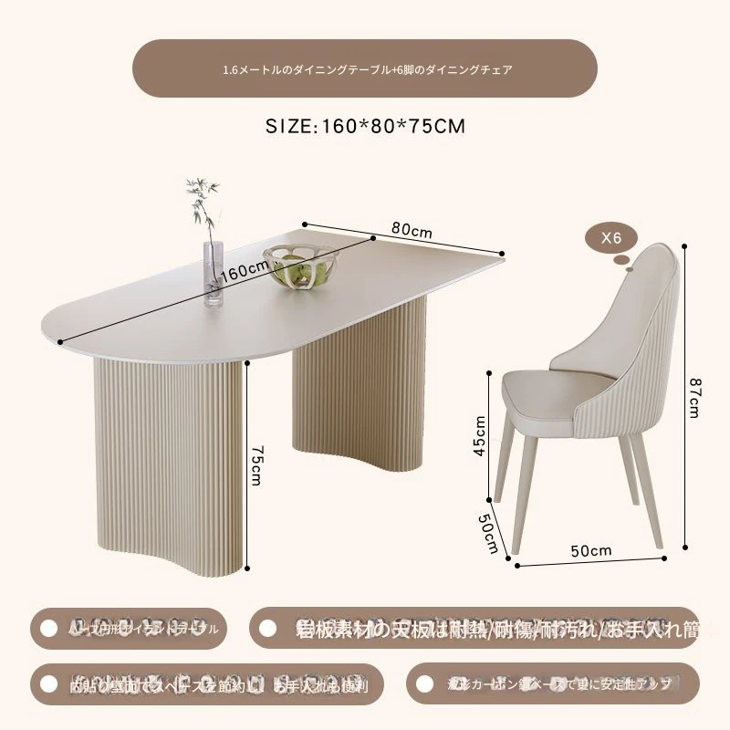 【セット】1.6メートルダイニングテーブル+6脚のダイニングチェア