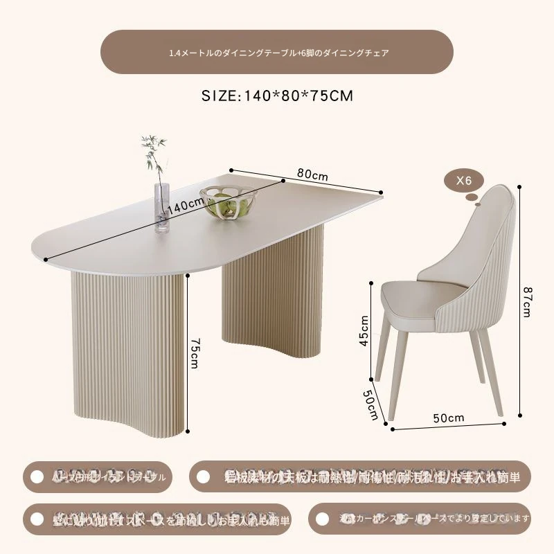 【セット】1.4メートルダイニングテーブル+6脚のダイニングチェア