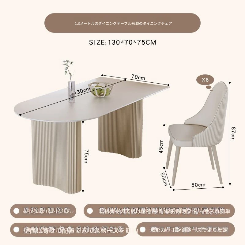 【セット】1.3メートルダイニングテーブル+6脚のダイニングチェア