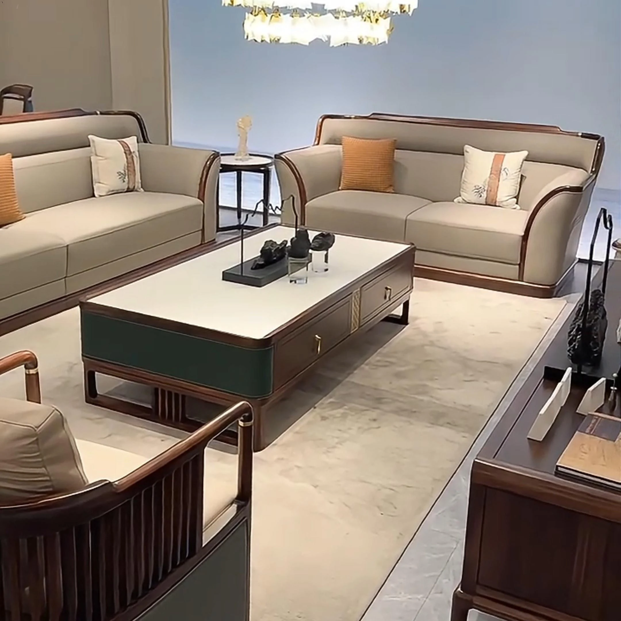 新中式の高級無垢材ソファセット - モダンでシンプルな禅スタイル、大小様々な部屋にぴったりのウッディな宿泊施設向け家具!心地よい空間を演出します。