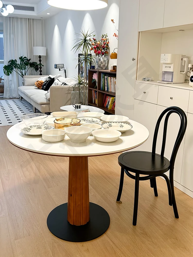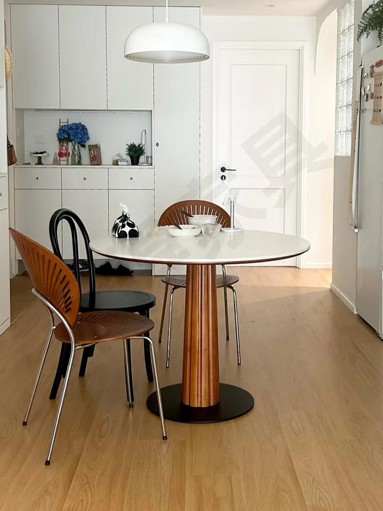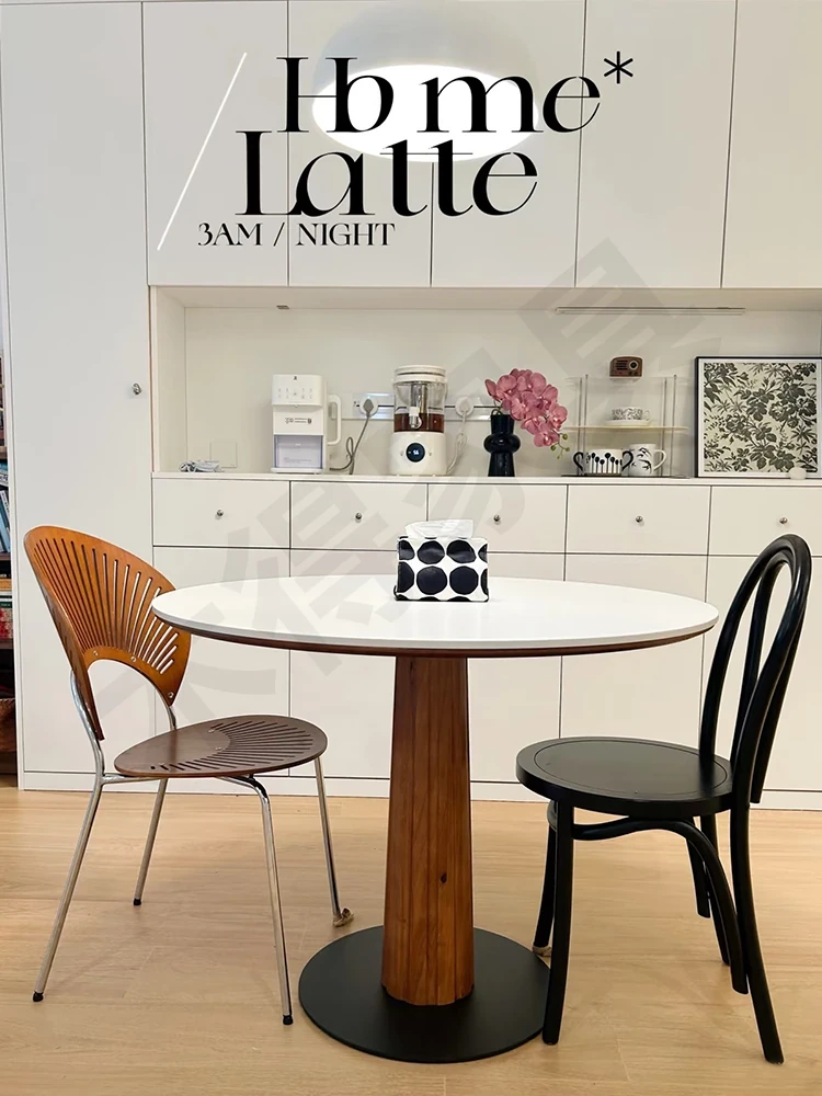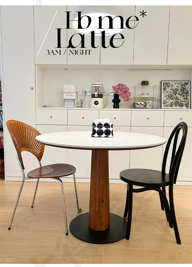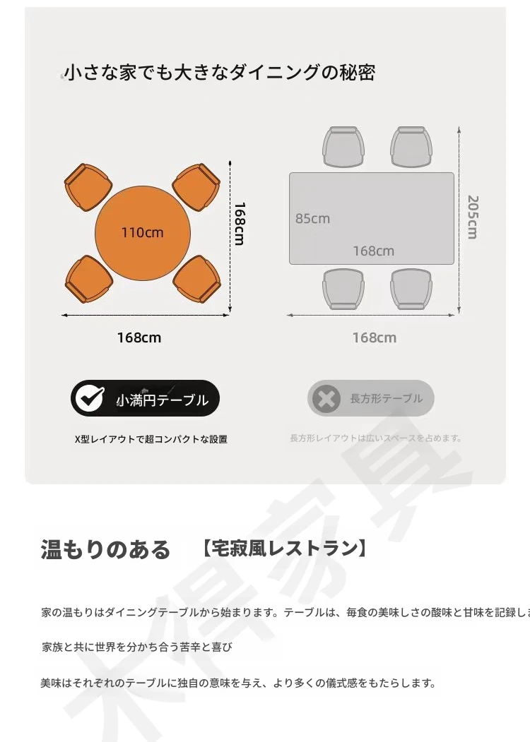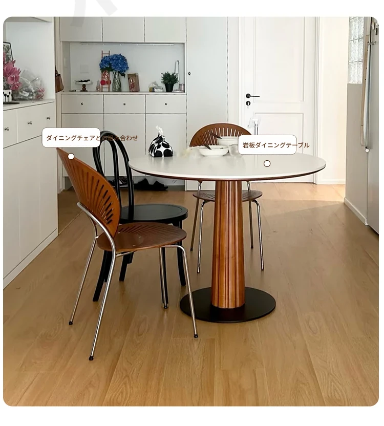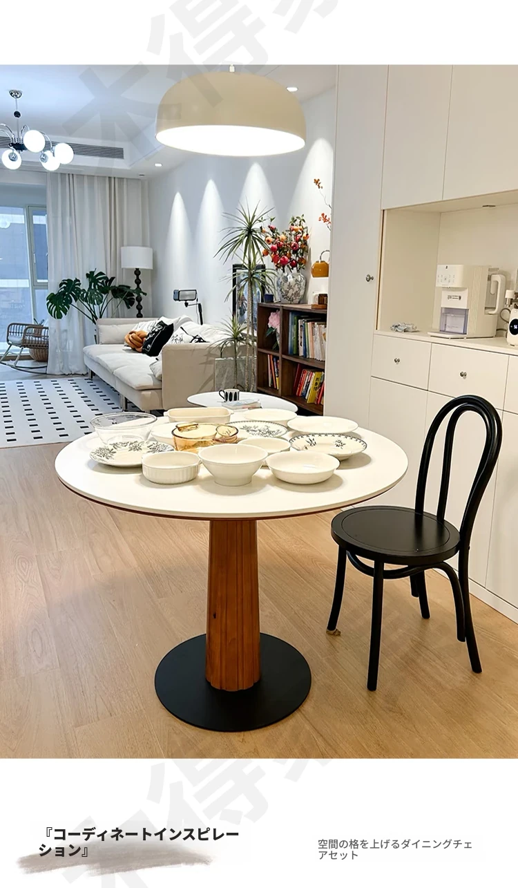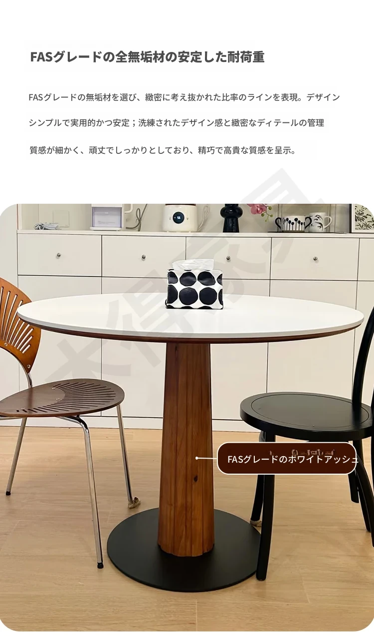 北欧スタイルの無垢材ラウンドダイニングテーブル - シンプルで小型の家庭用食卓、ミーティングにも最適な円形テーブルとチェアのセット!