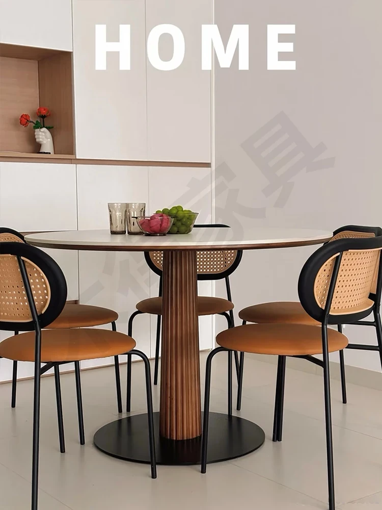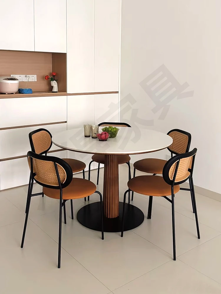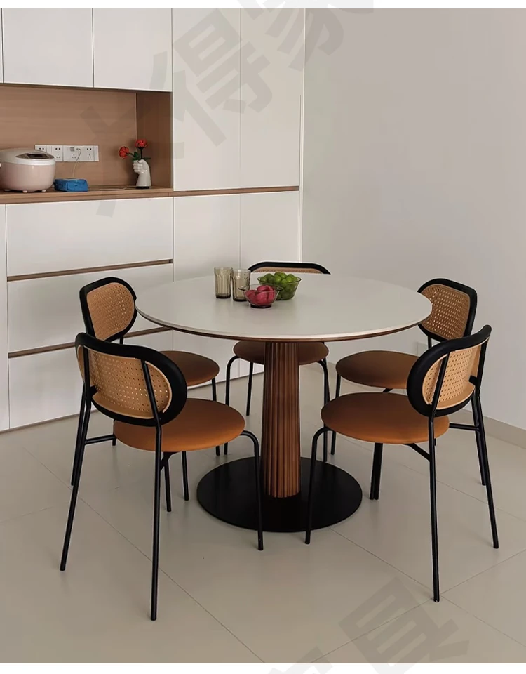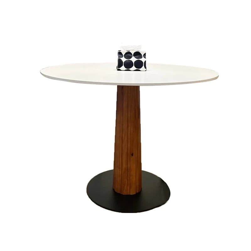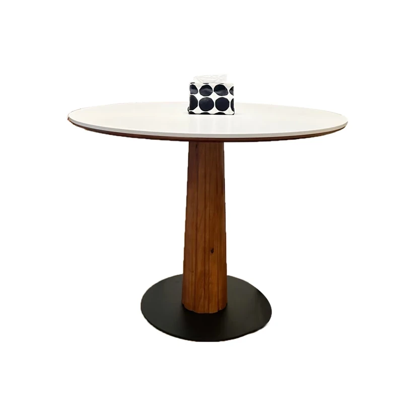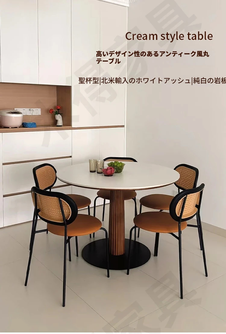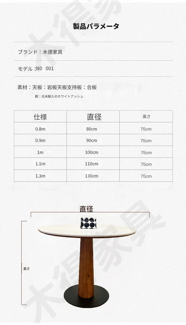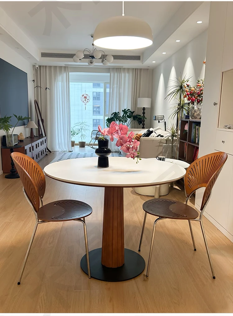 北欧スタイルの無垢材ラウンドダイニングテーブル - シンプルで小型の家庭用食卓、ミーティングにも最適な円形テーブルとチェアのセット!