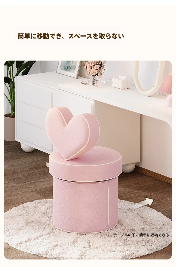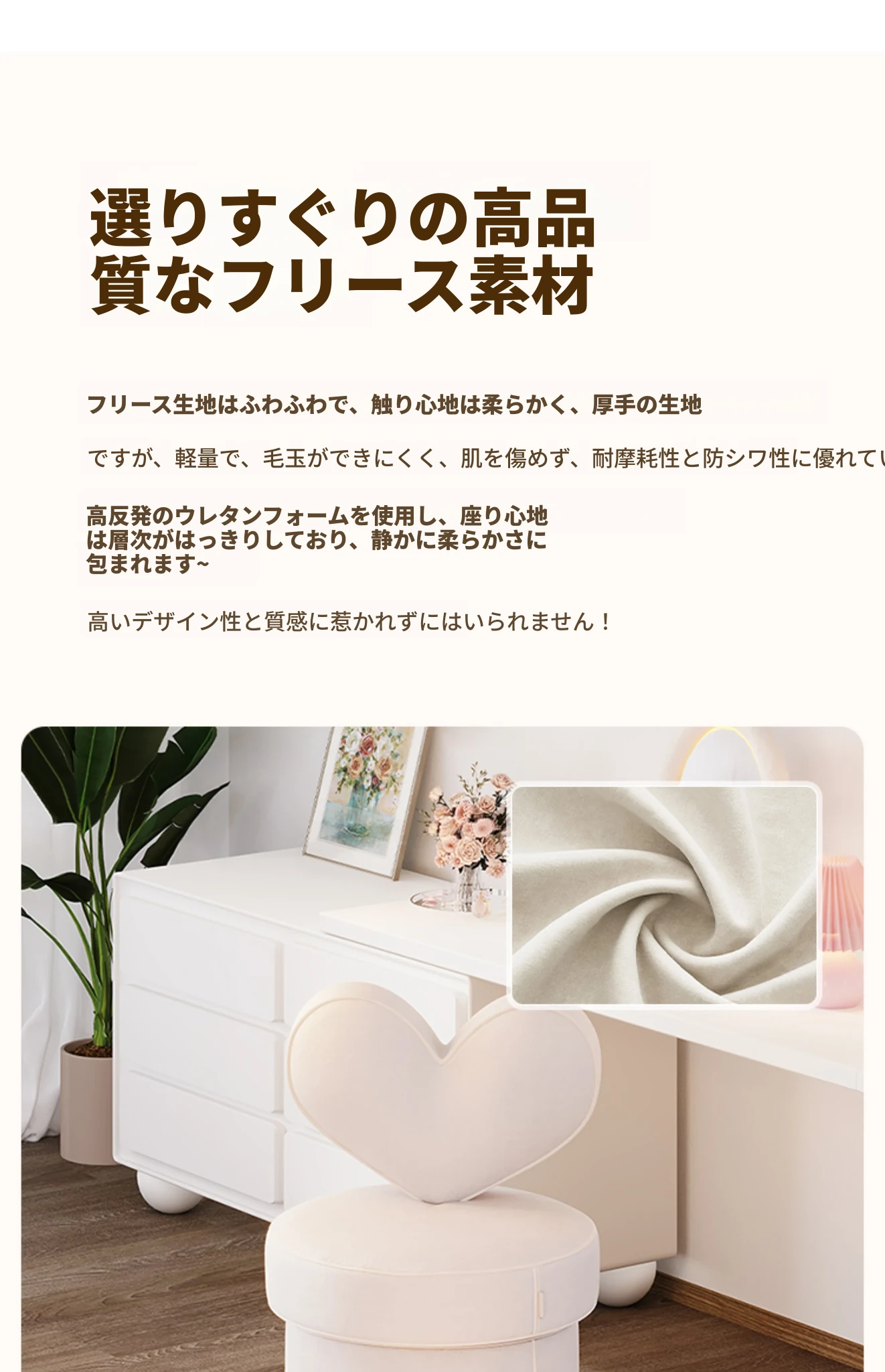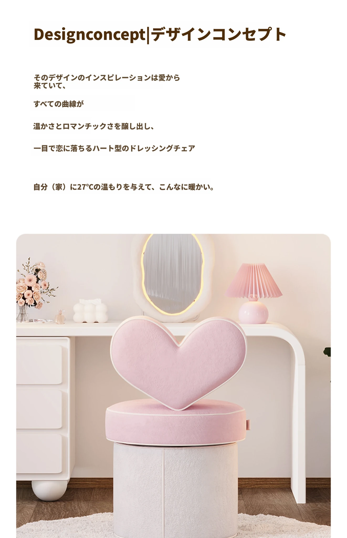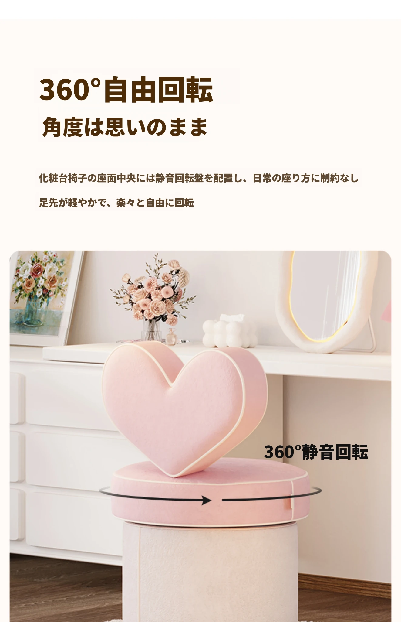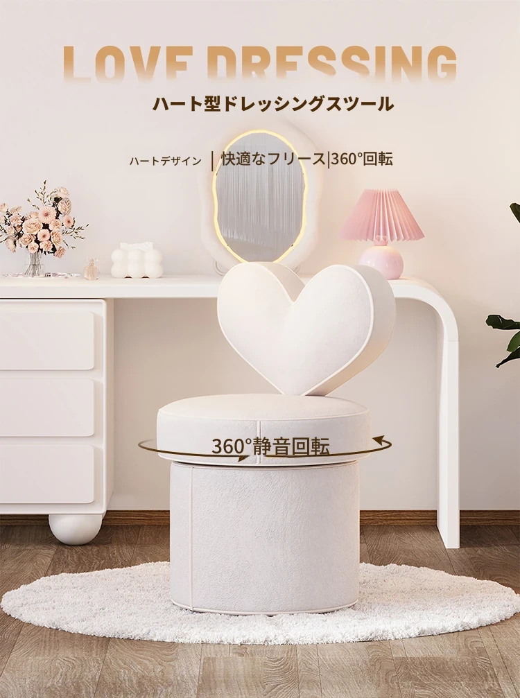 360°静音回転 - フェルトベージュのハート型ドレッシングスツール