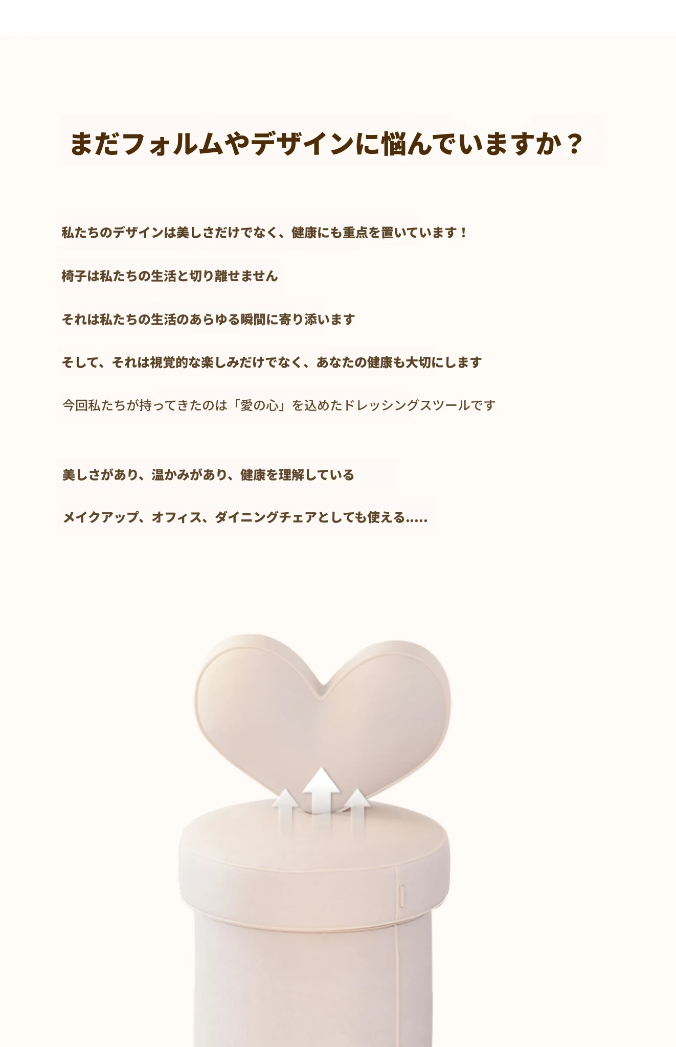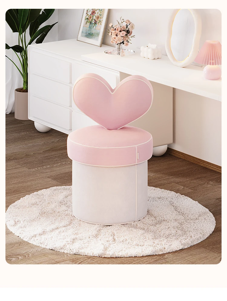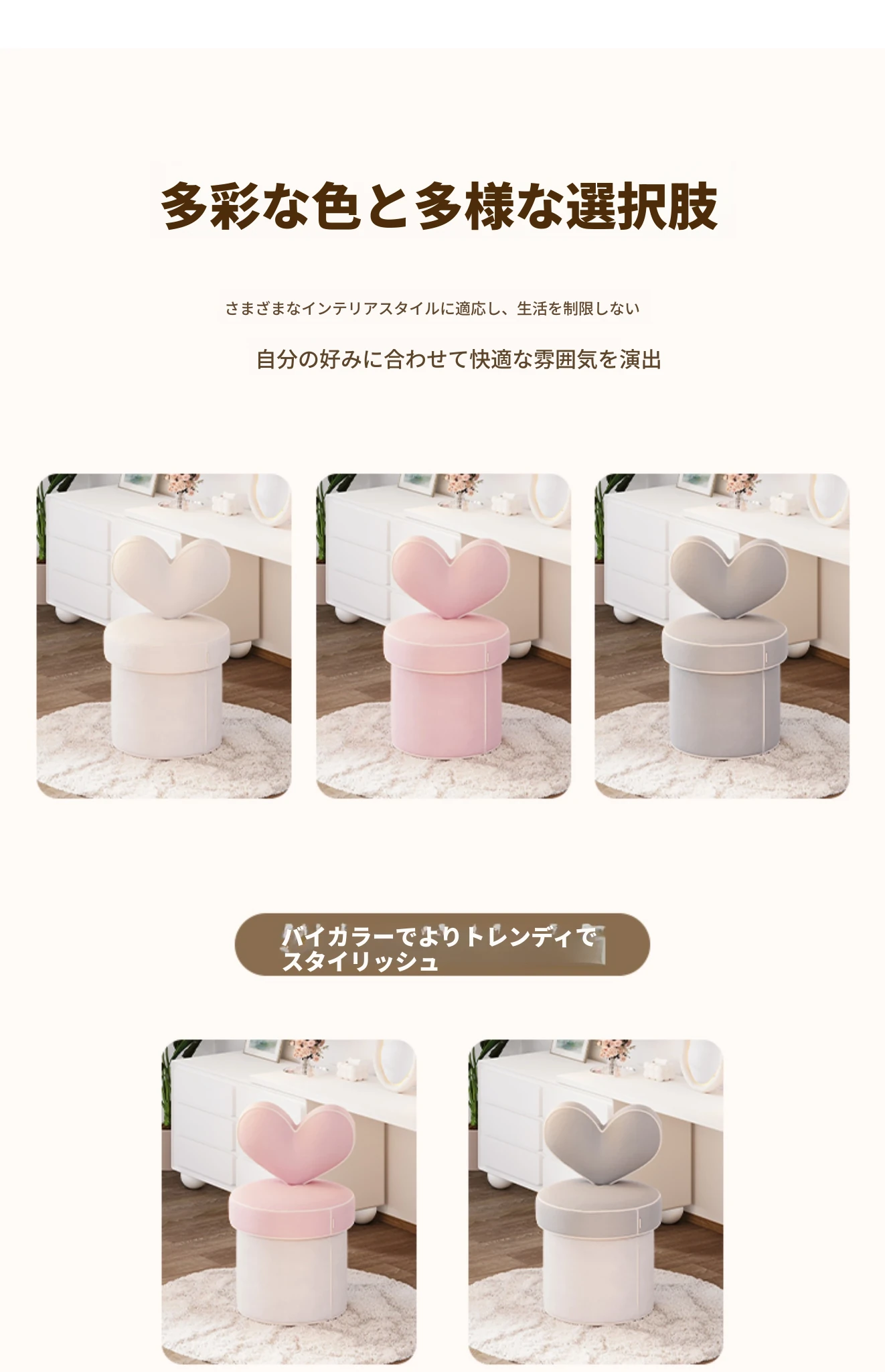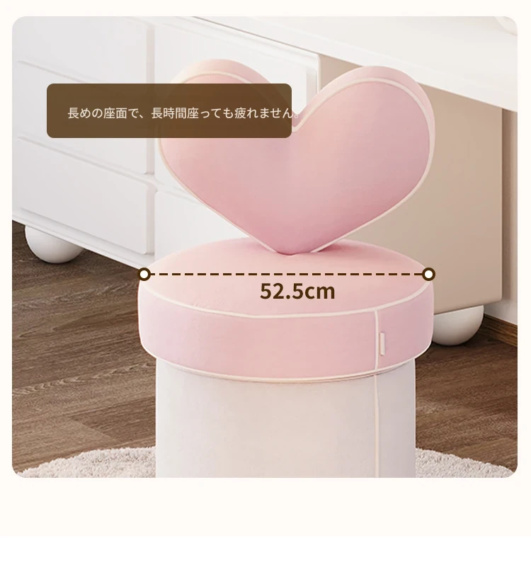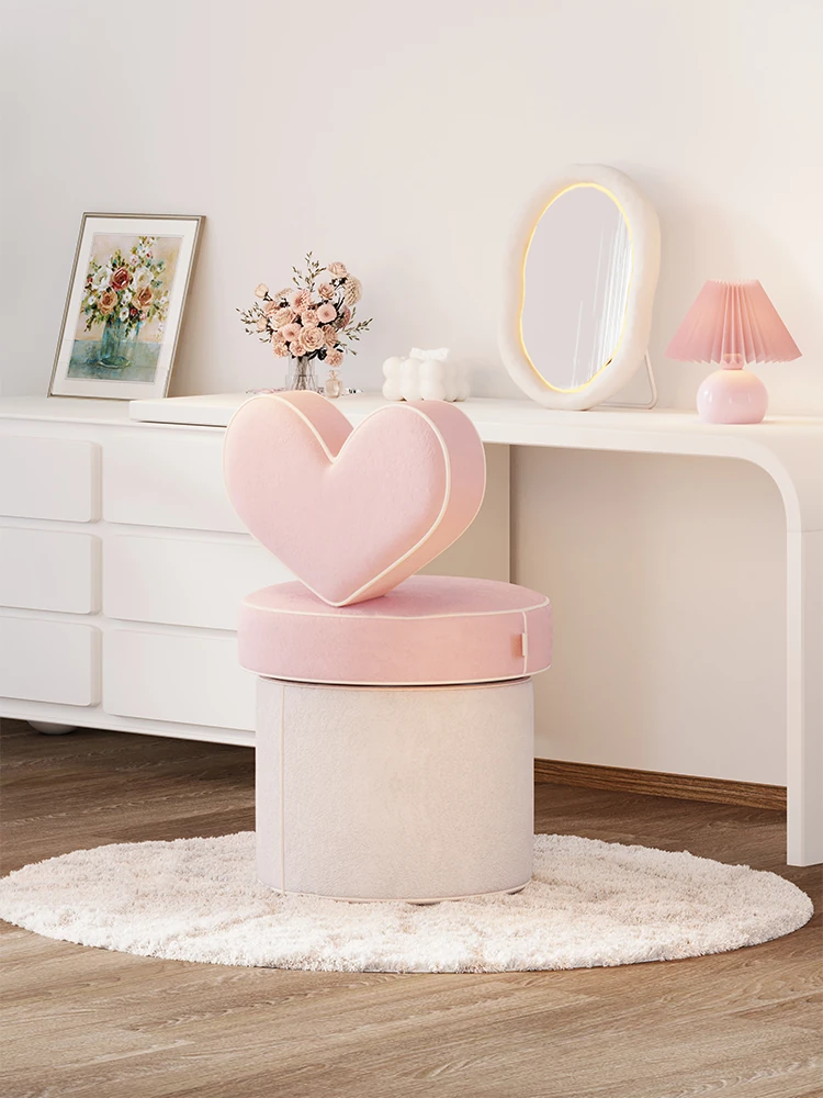 360°静音回転 - フェルトベージュのハート型ドレッシングスツール