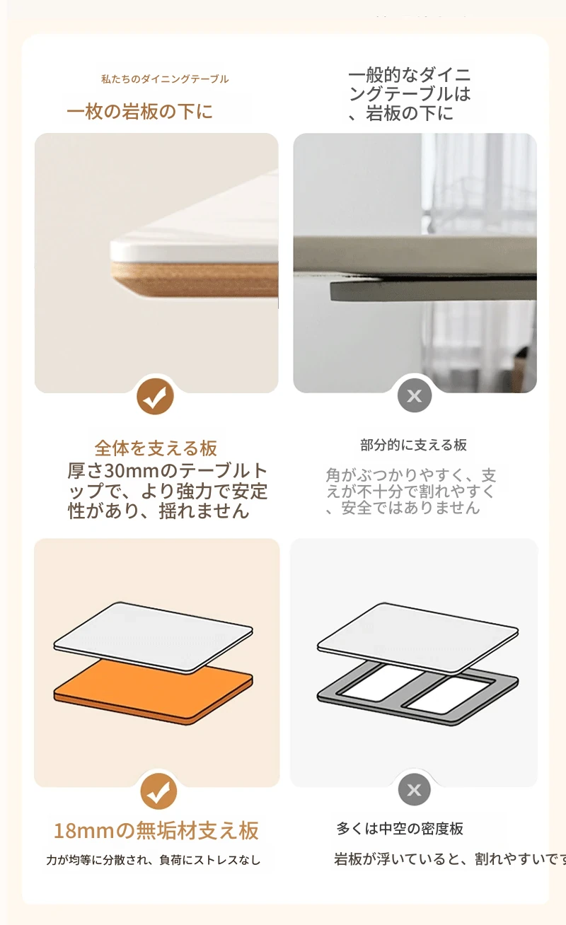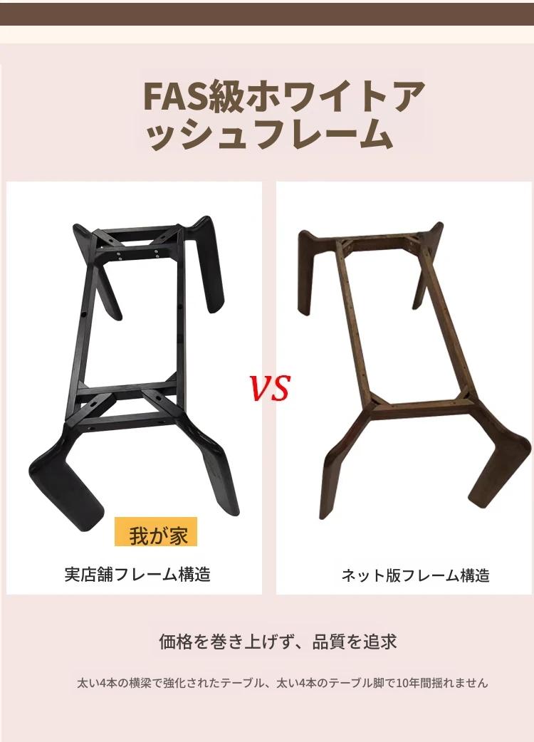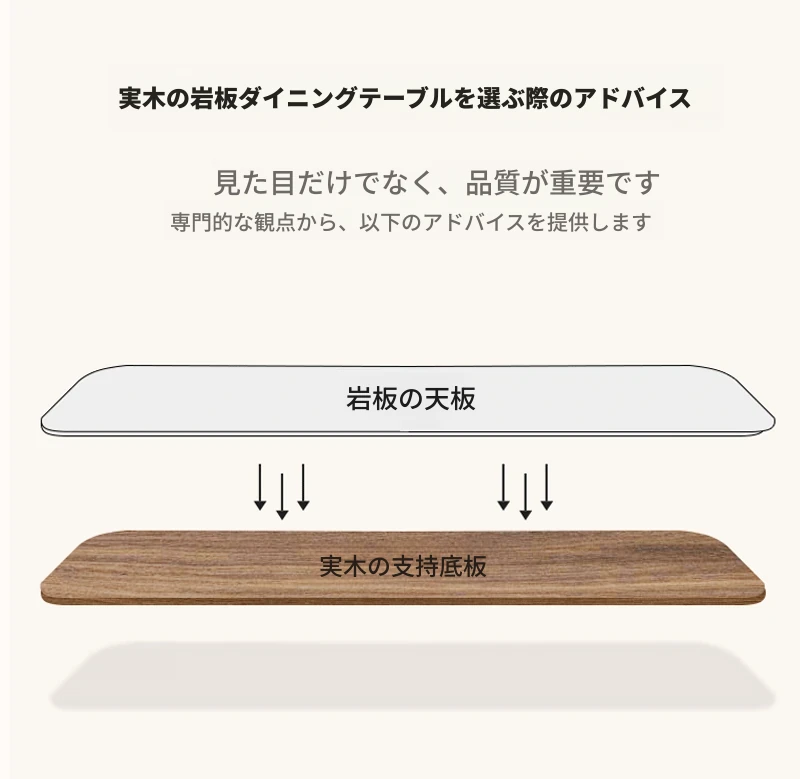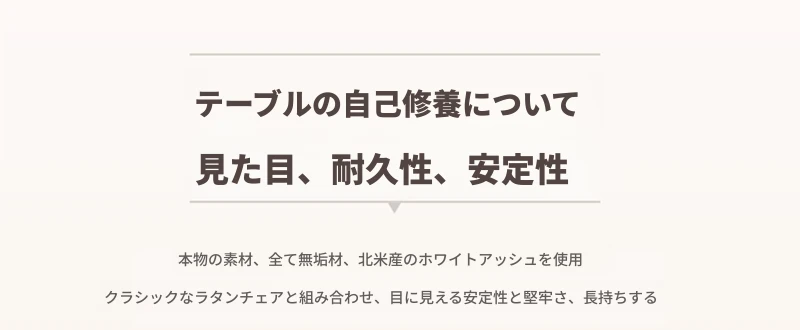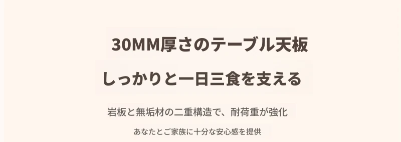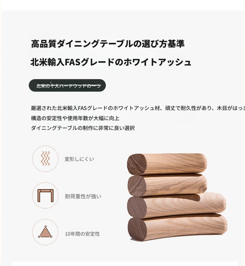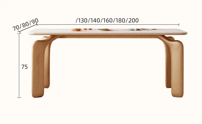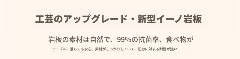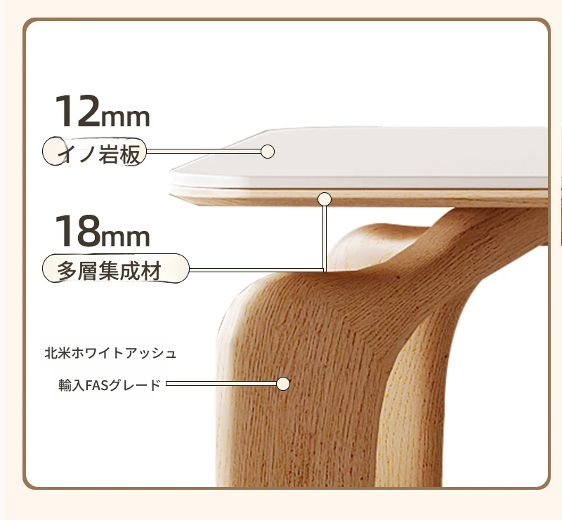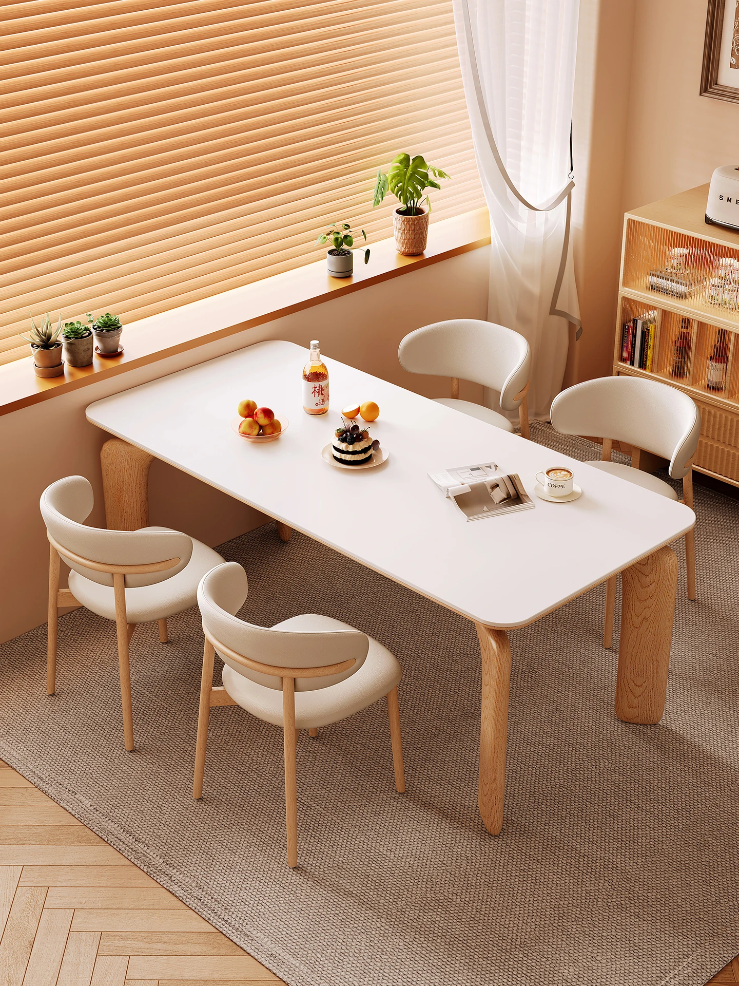 無垢材のクリーム色レトロ岩板ダイニングテーブル ホワイトアッシュ製 エレファントレッグデザイン コンパクトな小型住宅に最適なモダンシンプルな長方形テーブルで、スタイリッシュな食卓を演出します!