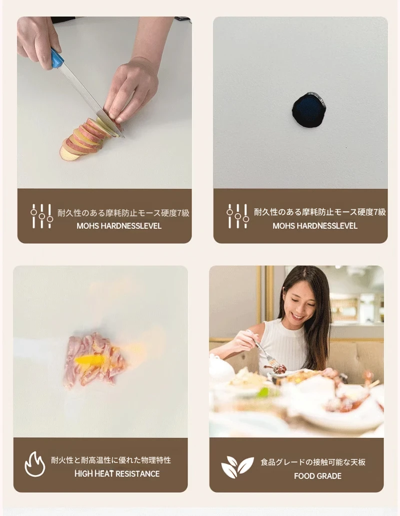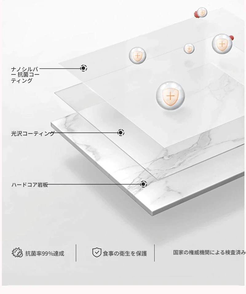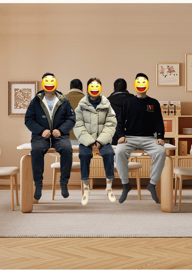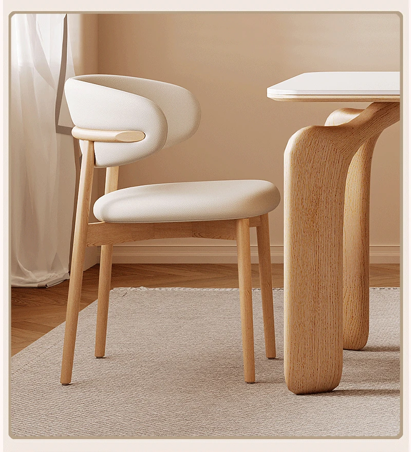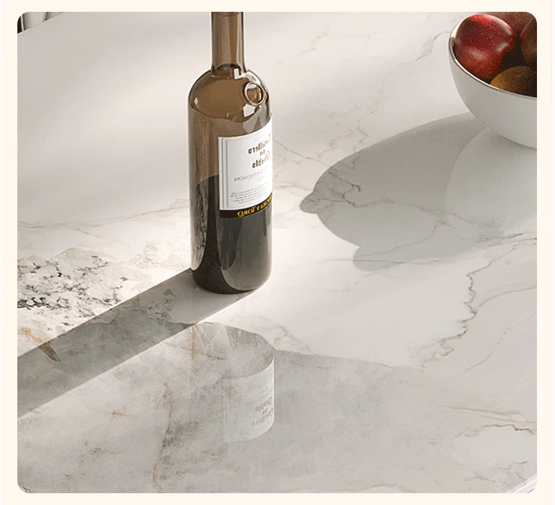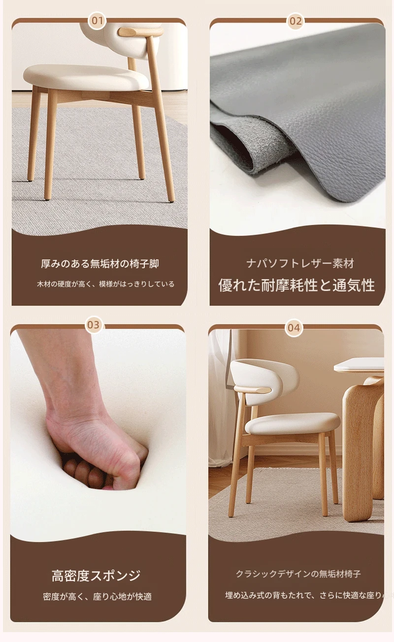 無垢材のクリーム色レトロ岩板ダイニングテーブル ホワイトアッシュ製 エレファントレッグデザイン コンパクトな小型住宅に最適なモダンシンプルな長方形テーブルで、スタイリッシュな食卓を演出します!