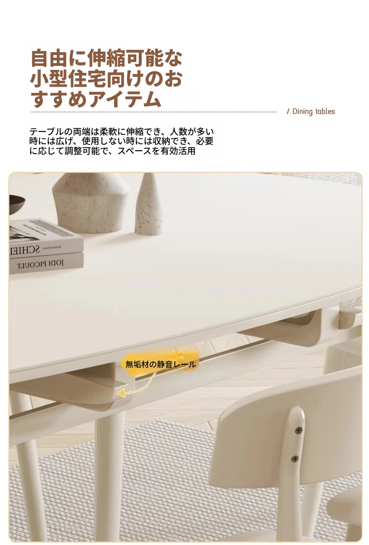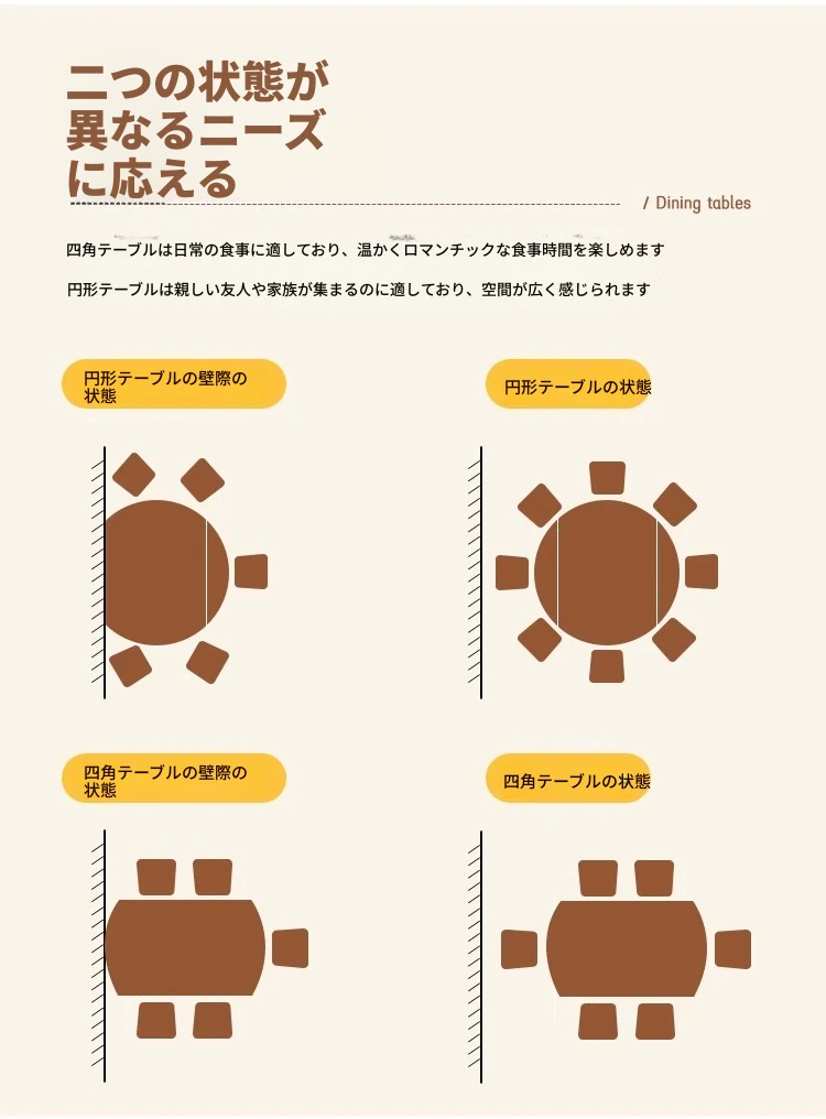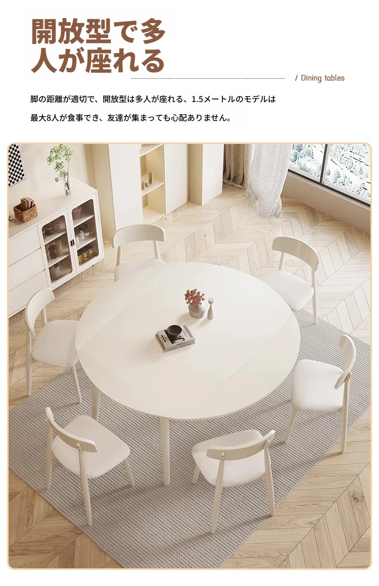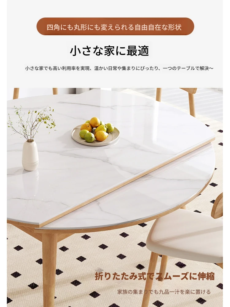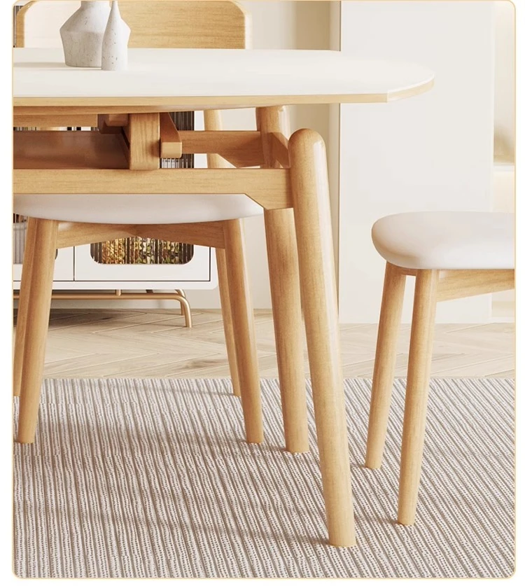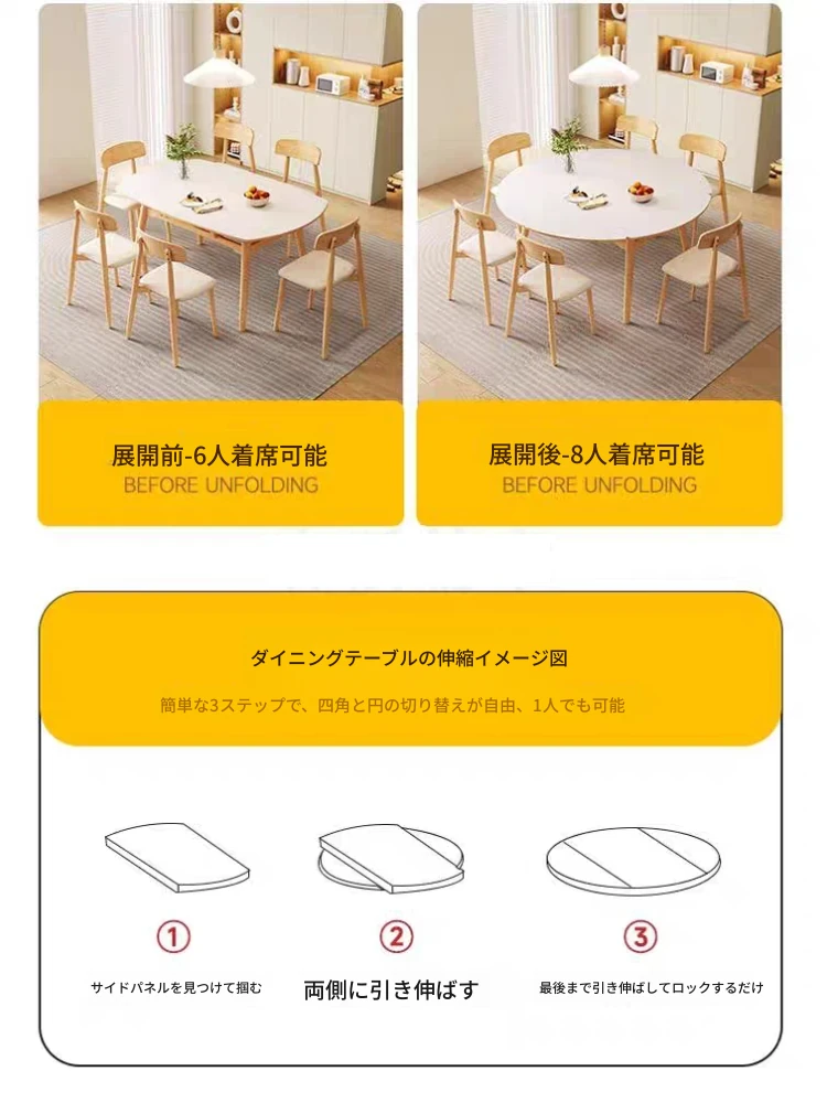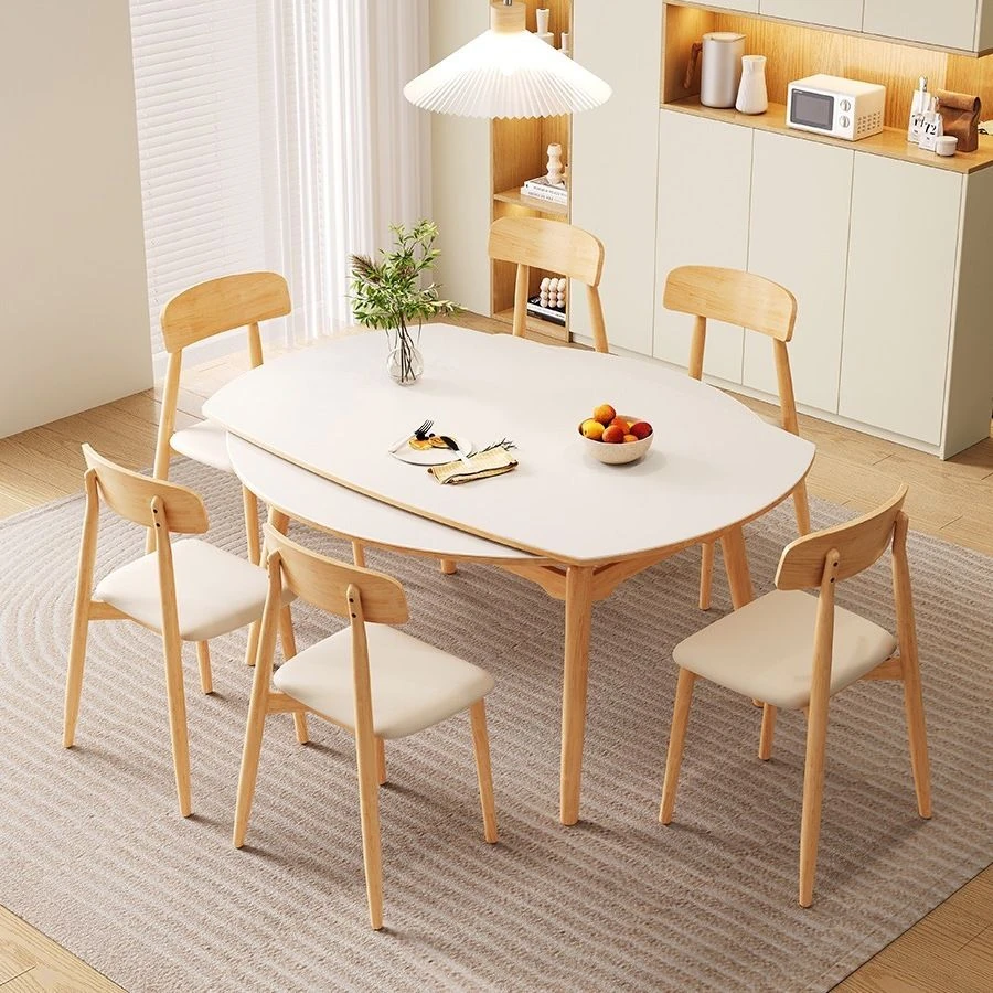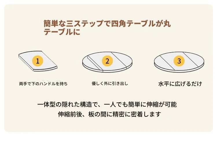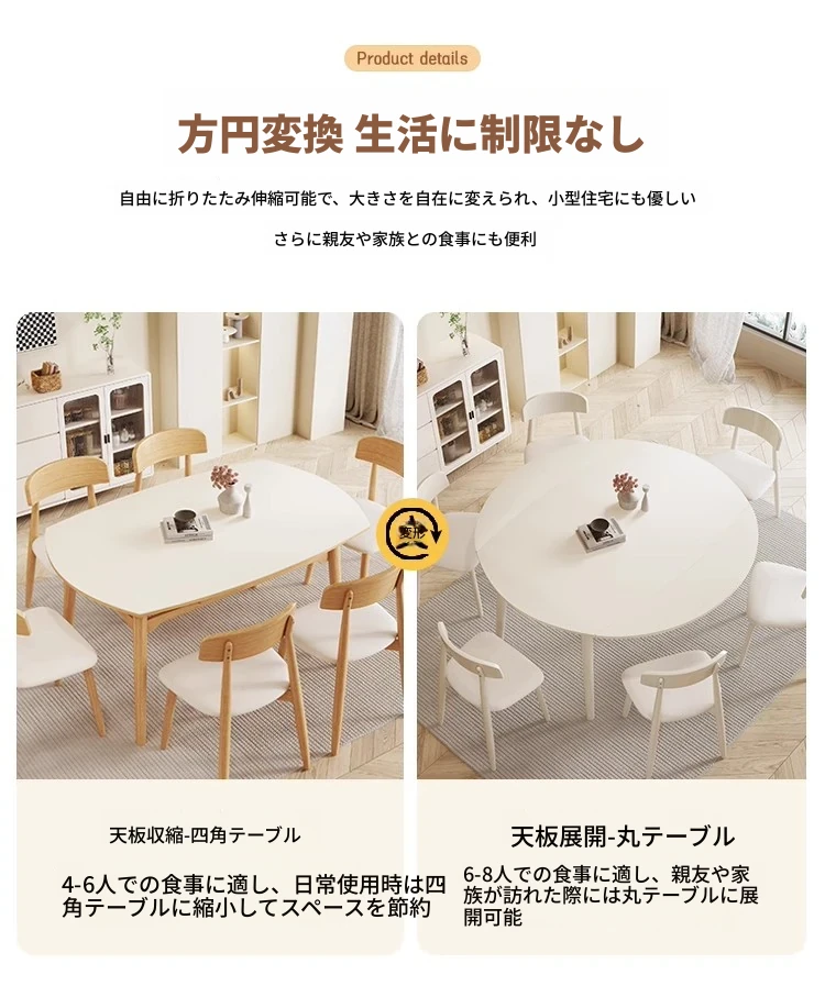 天然木製クリーム風の方形・円形兼用テーブル | スマートに伸縮可能なデザイン | 小さな家にぴったりな実用的な食卓 | おしゃれで機能的なダイニングテーブル