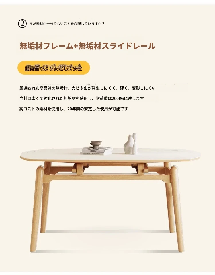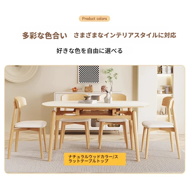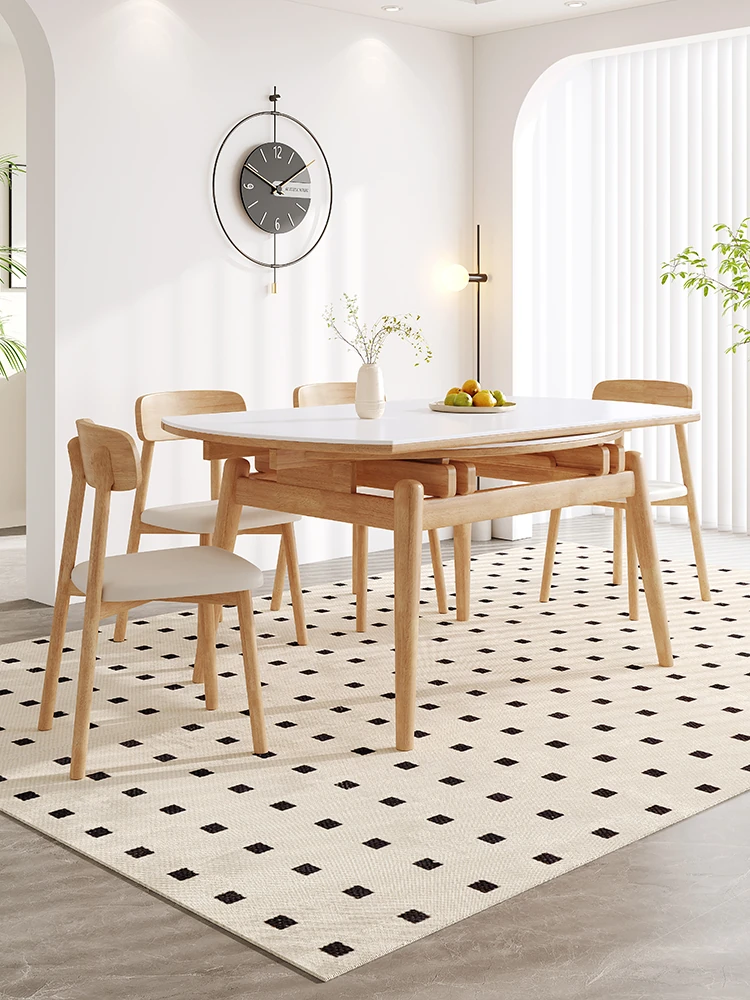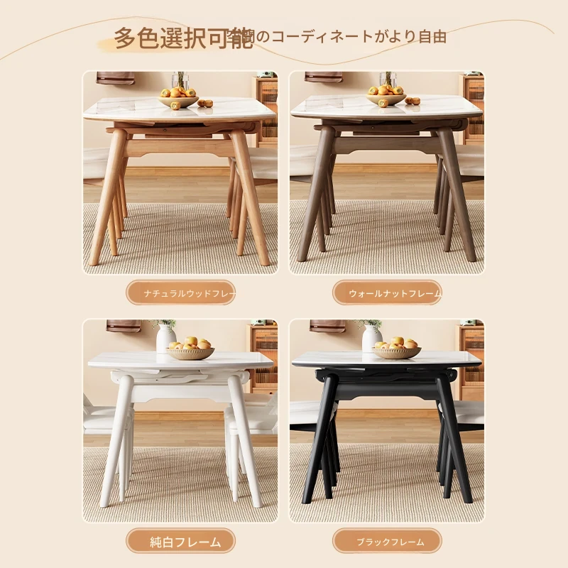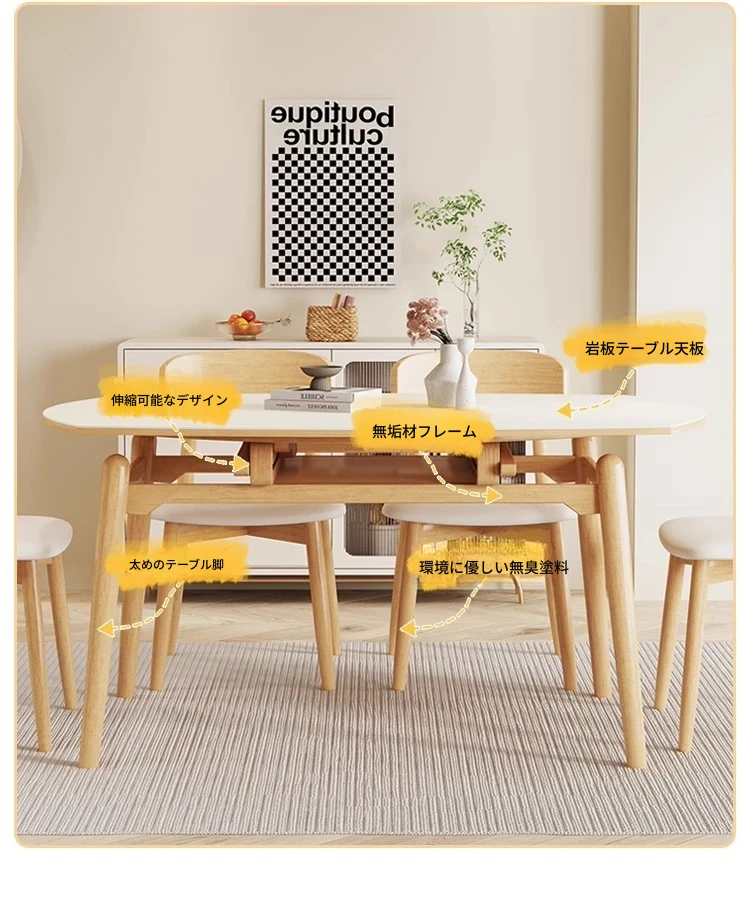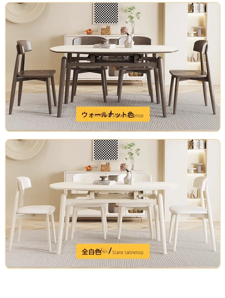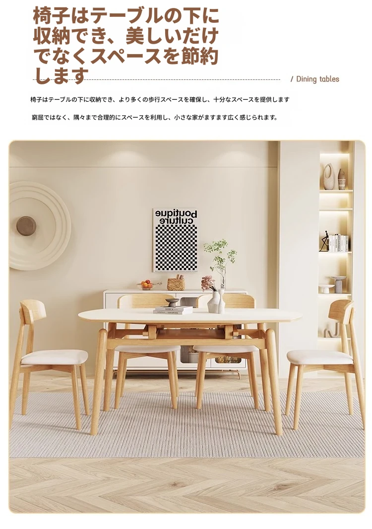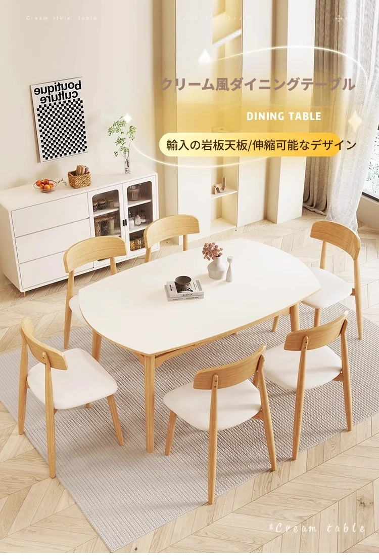 天然木製クリーム風の方形・円形兼用テーブル | スマートに伸縮可能なデザイン | 小さな家にぴったりな実用的な食卓 | おしゃれで機能的なダイニングテーブル