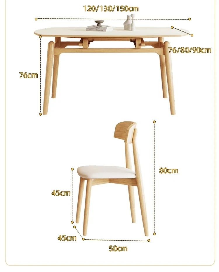 1.5メートル1テーブル6椅子【四角と円両用】全実木
