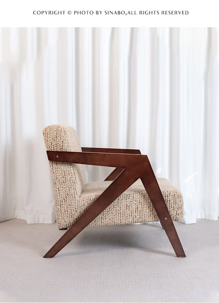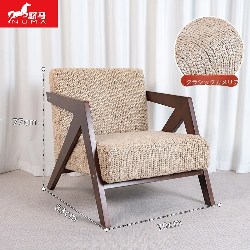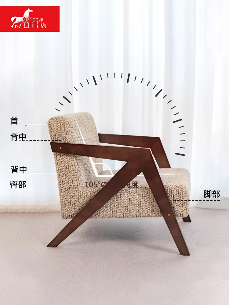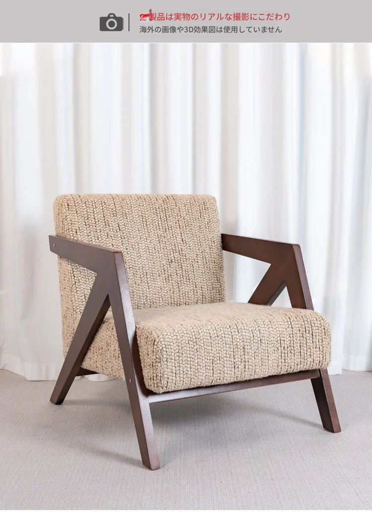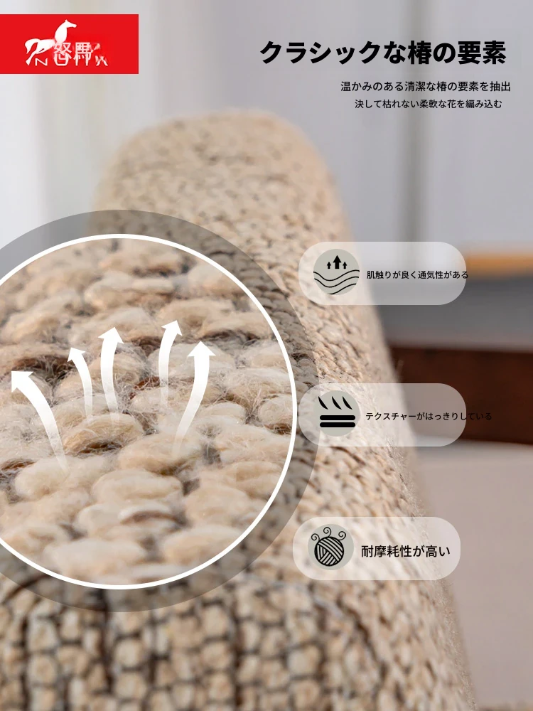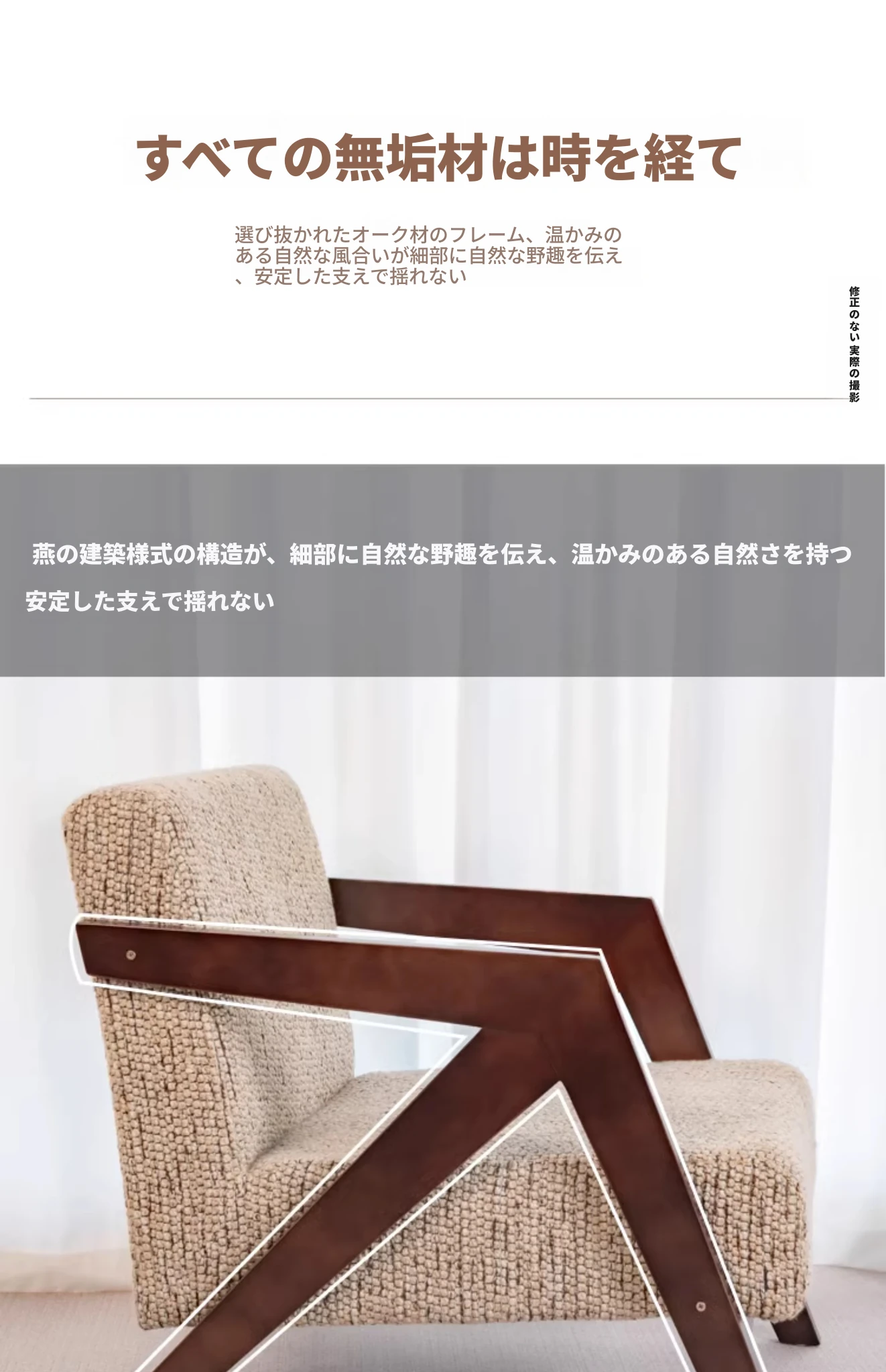 侘寂風デザインの一人掛けソファチェア - レトロな木製と麻素材で作られた、居心地抜群のリラックスチェア。リビングやバルコニーにぴったりな中古風のくつろぎスペースを演出します!