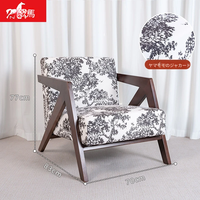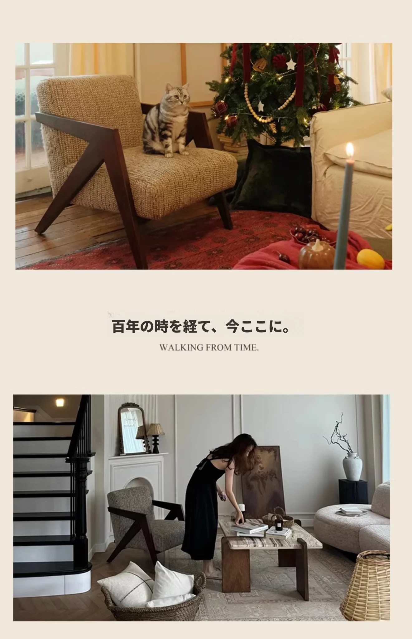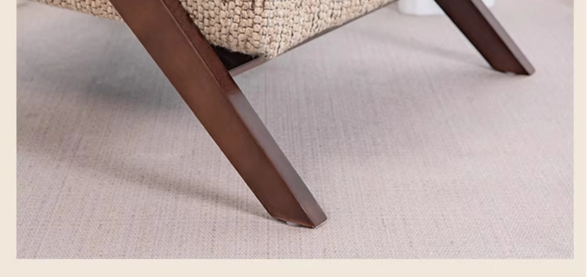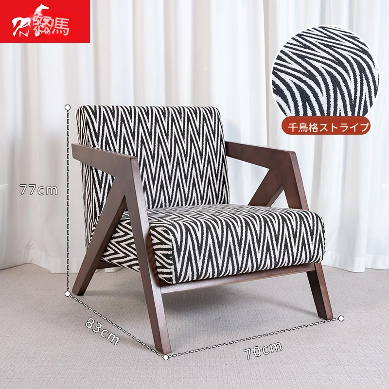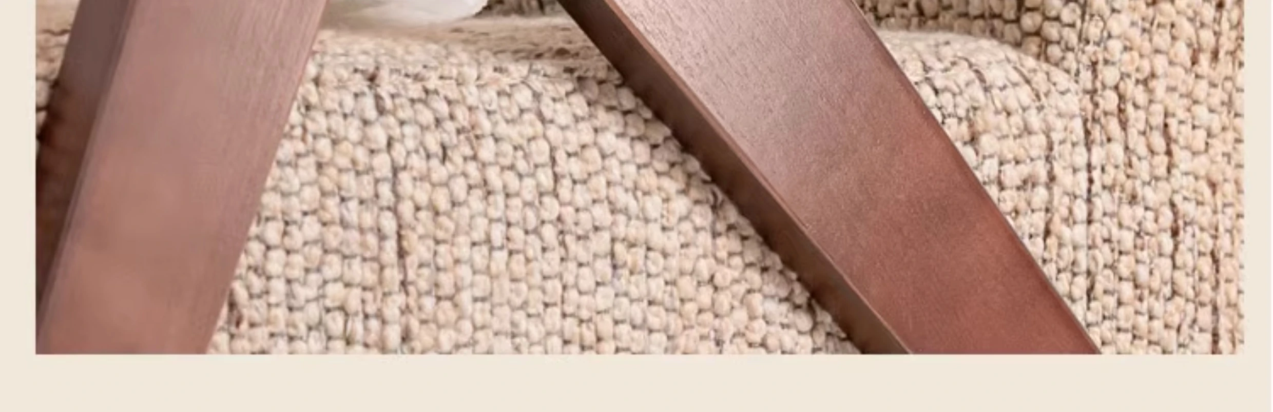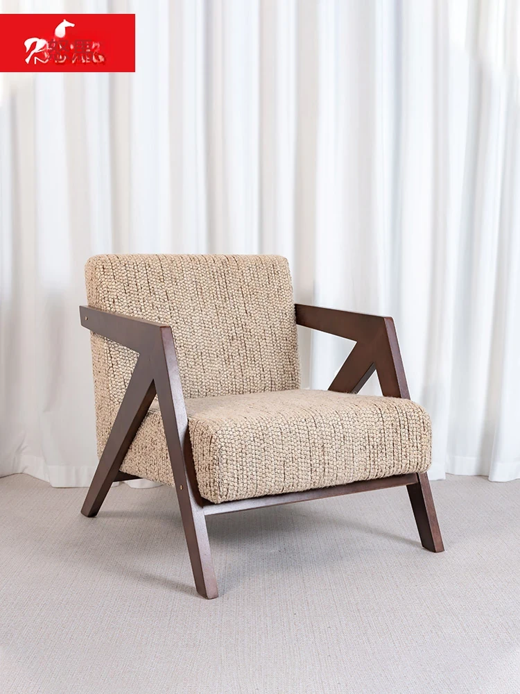 侘寂風デザインの一人掛けソファチェア - レトロな木製と麻素材で作られた、居心地抜群のリラックスチェア。リビングやバルコニーにぴったりな中古風のくつろぎスペースを演出します!