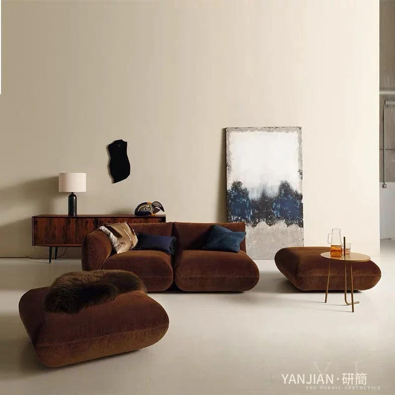 北欧風ヴィンテージ布製ソファ|現代的でシンプルなラグジュアリー|インスタ映えする小型住宅向け|イタリアンミニマリズムの整ったデザイン|モジュール式で自由にレイアウト可能!