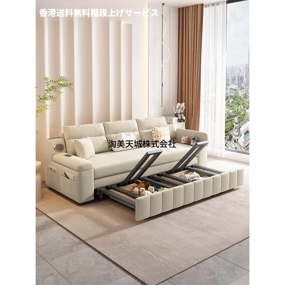 【香港送料無料】多機能ソファベッド!引き出し式デザインで小型スペースにも最適なリビング必需品。快適な座り心地と寝心地を両立したラグジュアリーなテクスチャー。あなたの生活空間を格上げ!