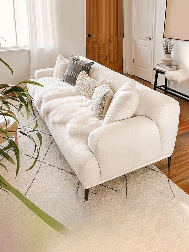 侘寂風のリネン製3人掛けソファ - 小さなリビングや民宿にぴったり!豆腐ブロックデザインで可愛らしく、コットンリネン素材で洗濯可能。スタイリッシュで快適なアパートメントソファをお楽しみください。