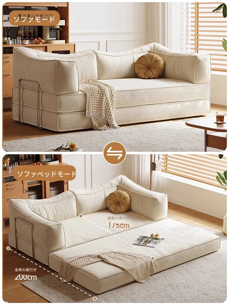 【香港送料無料】クリーミー風ソファベッド 小型リビングに最適!折り畳み可能な2WAYデザイン、ダブルサイズで多機能収納付き。快適な空間を実現!
