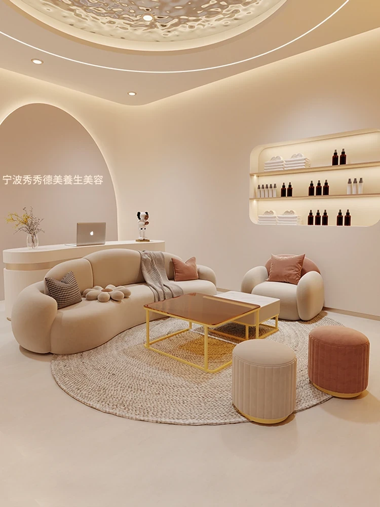 北欧風のラグジュアリー美容院専用ソファ|小型リビングに最適なモダンでシンプルなデザイン|クリエイティブな布製ソファでお客様をおもてなし!