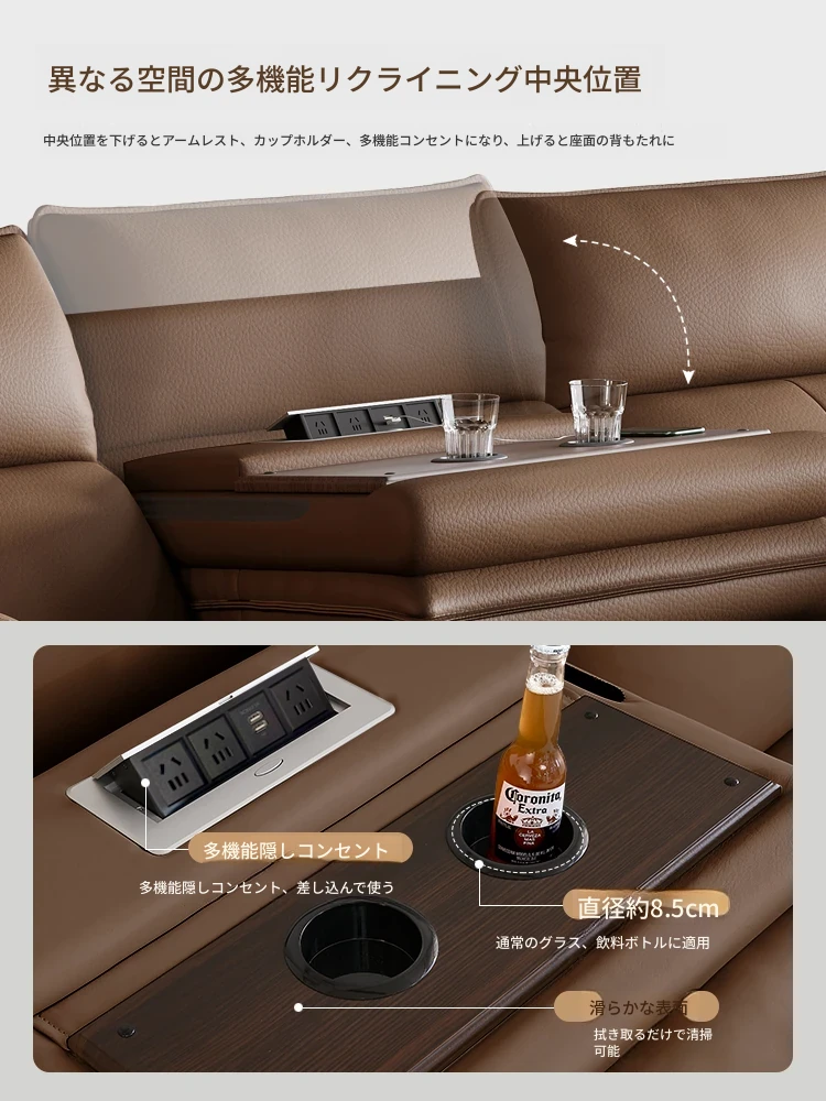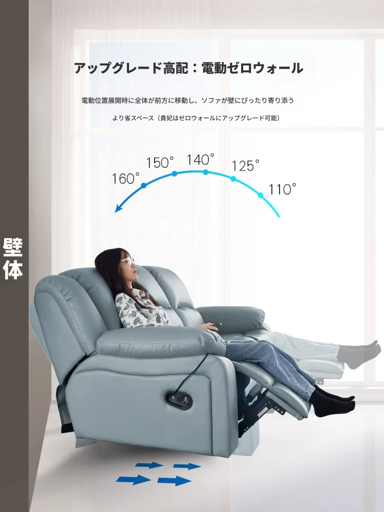 壁に寄り添わない電動ソファ!本革イタリアンレザー使用、モダンでシンプルなデザイン。伸縮可能で調整自在、快適なリビング空間を実現!